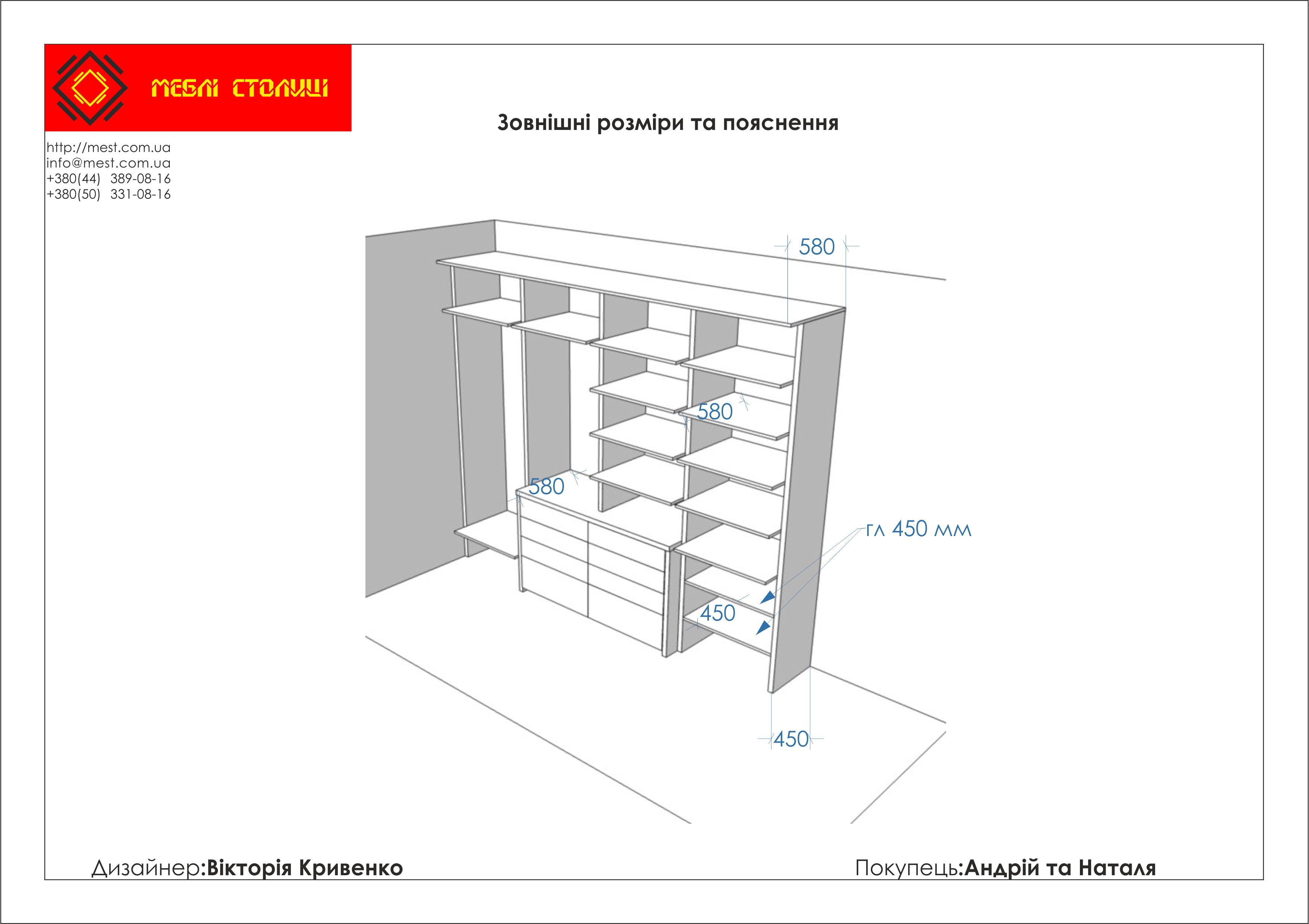 Менеджер: Тел: Номер замовлення: 01 01 20Дата початку: 14/01/2020Дата виконання: 29/02/2020Вартість: 64 100 гривень Категорії: Гардеробні