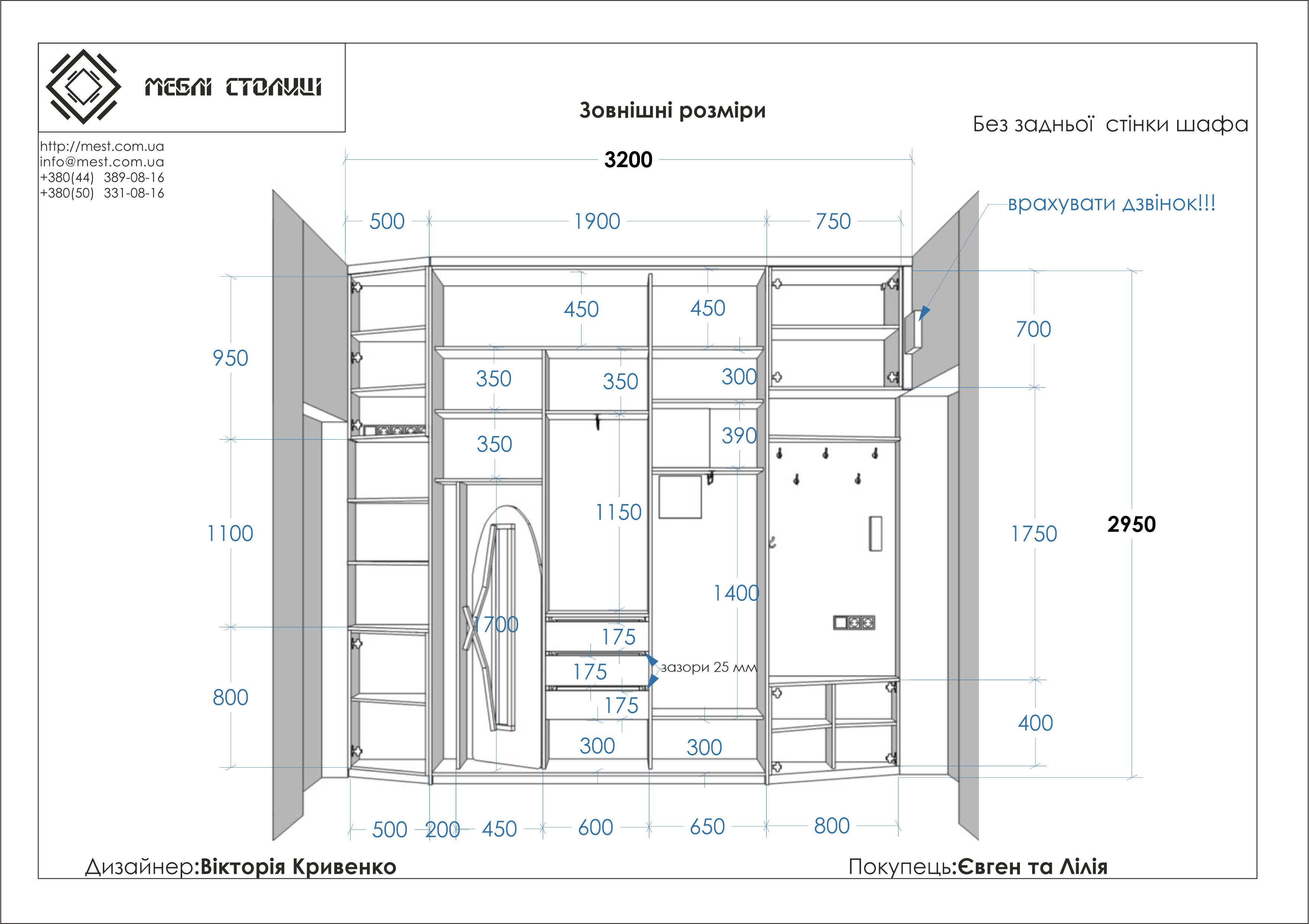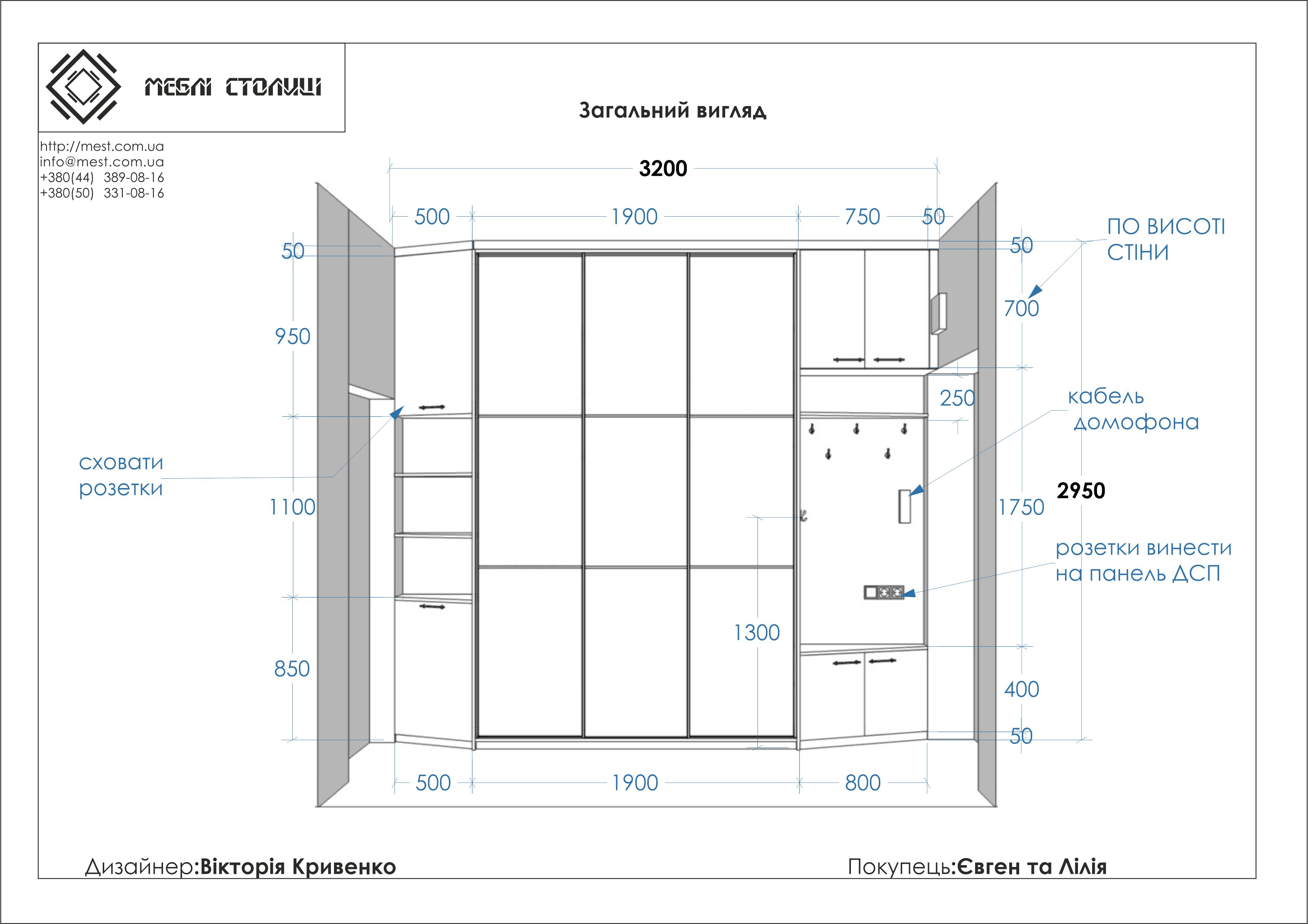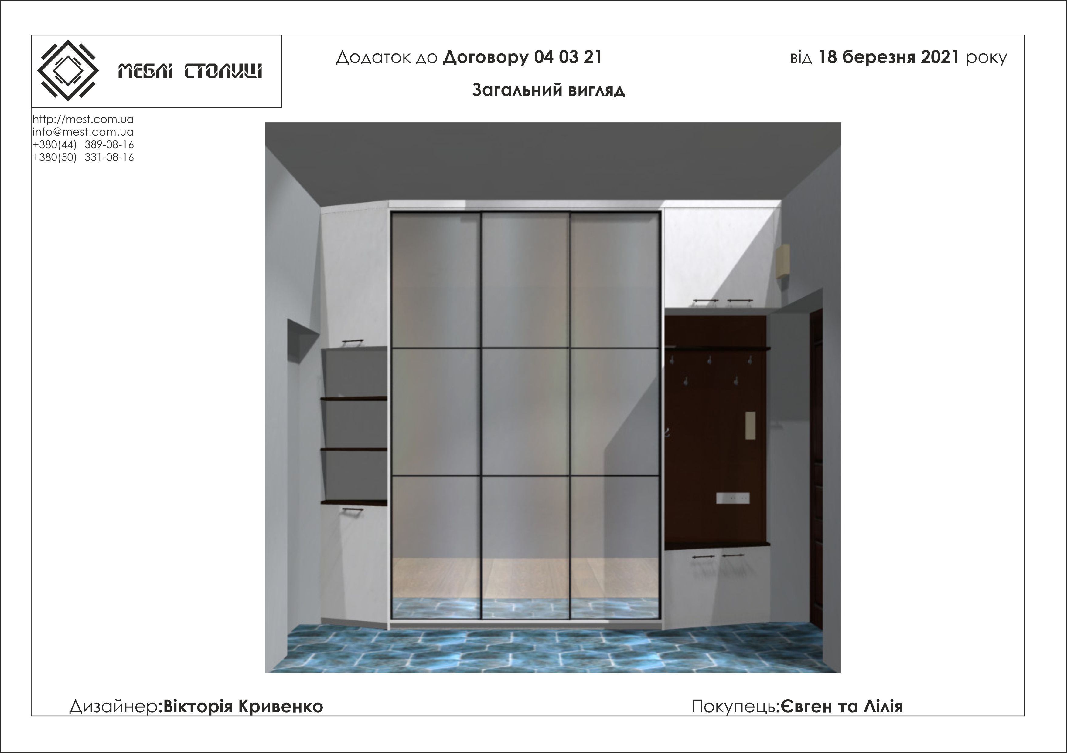 Менеджер: Тел: Номер замовлення: 04 03 21Дата початку: 17/03/2021Дата виконання: 27/04/2021Вартість: 64 700 гривень Категорії: Гардеробні