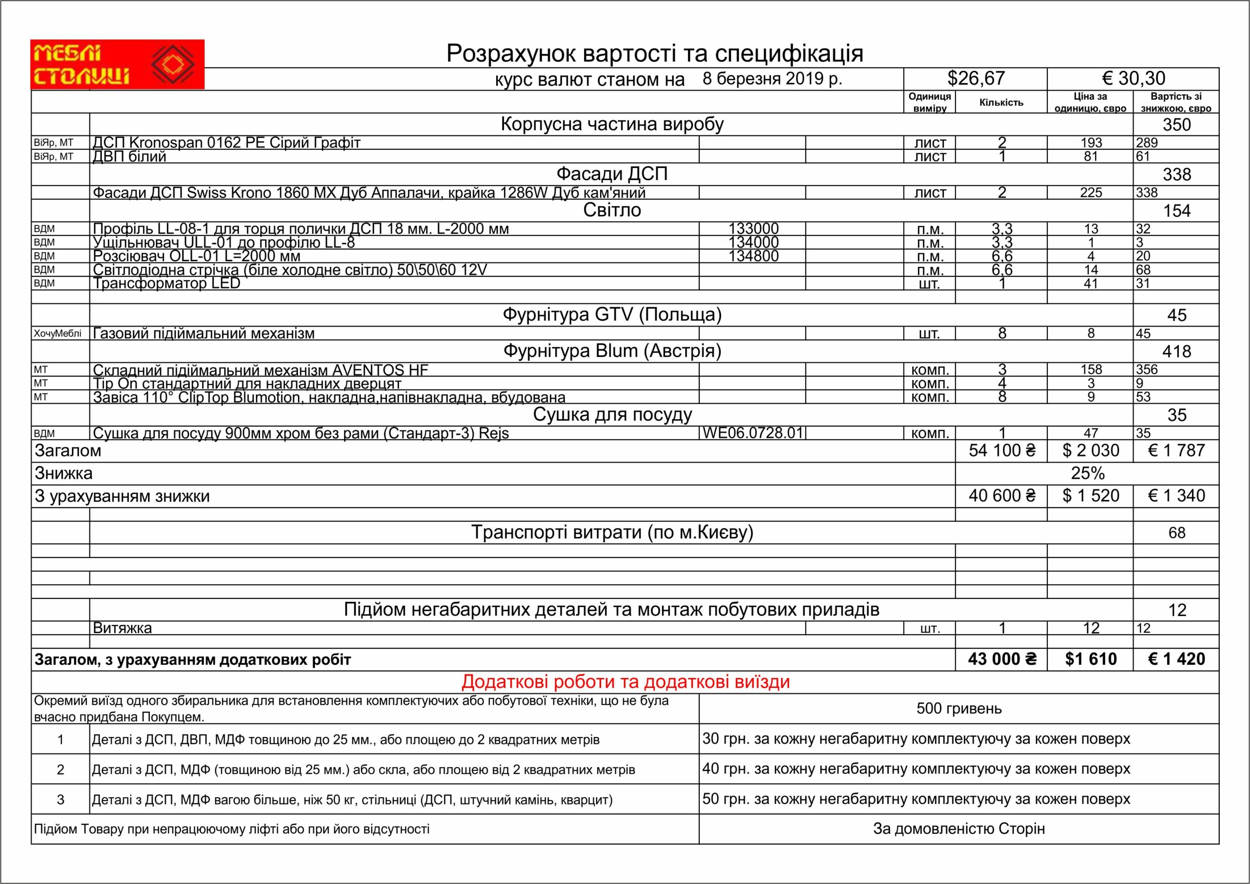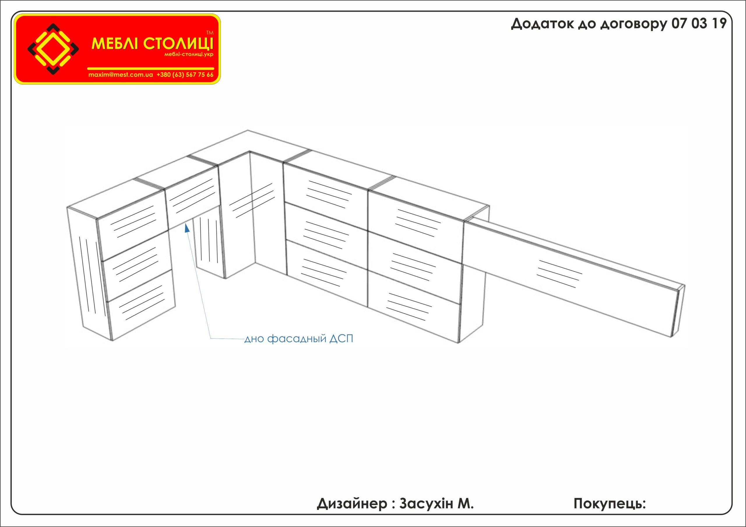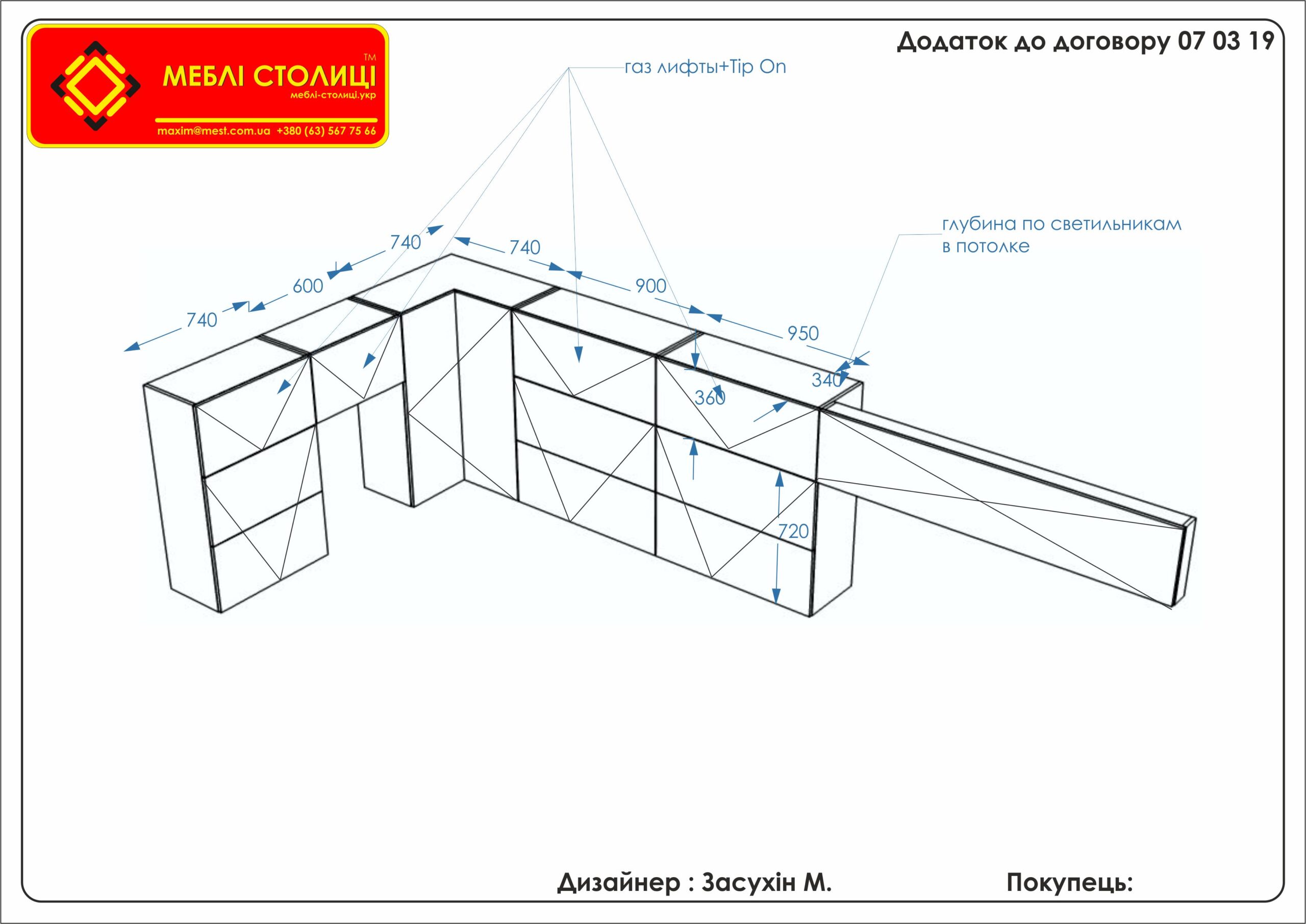 Менеджер: Тел: Номер замовлення: 07 03 19Дата початку: 10/03/2019Дата виконання: 17/04/2019Вартість: 43 000 гривень Категорії: Кухні