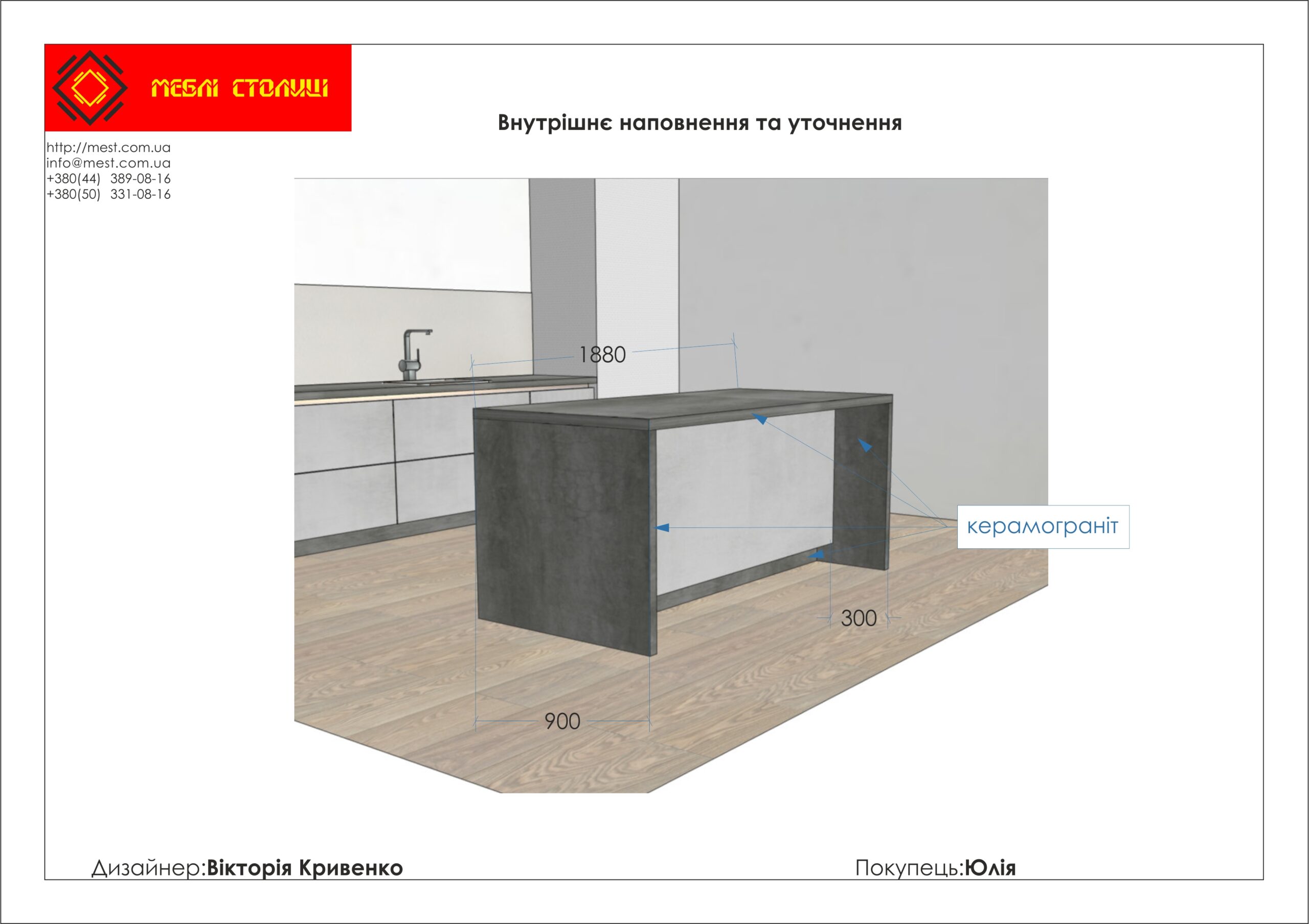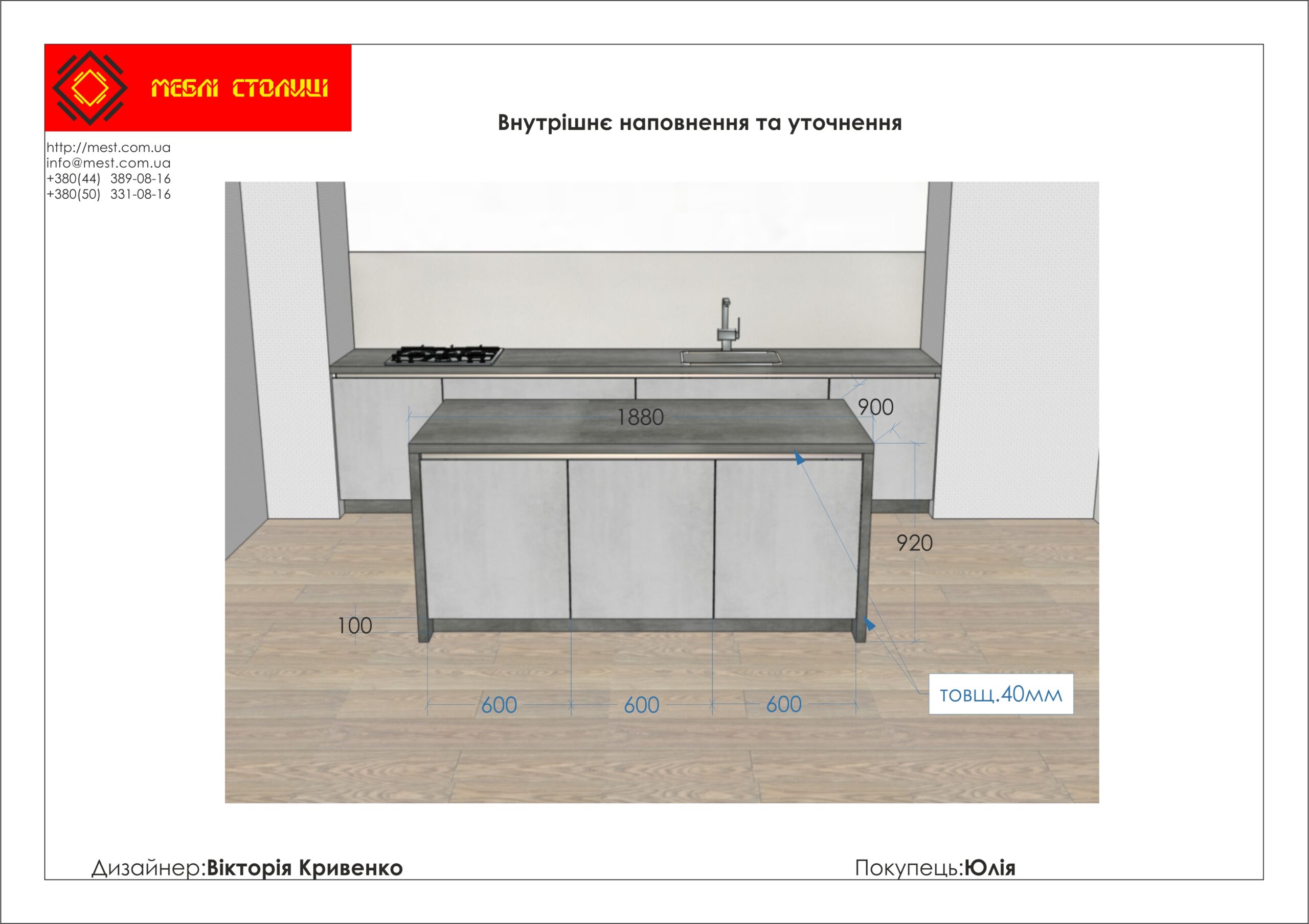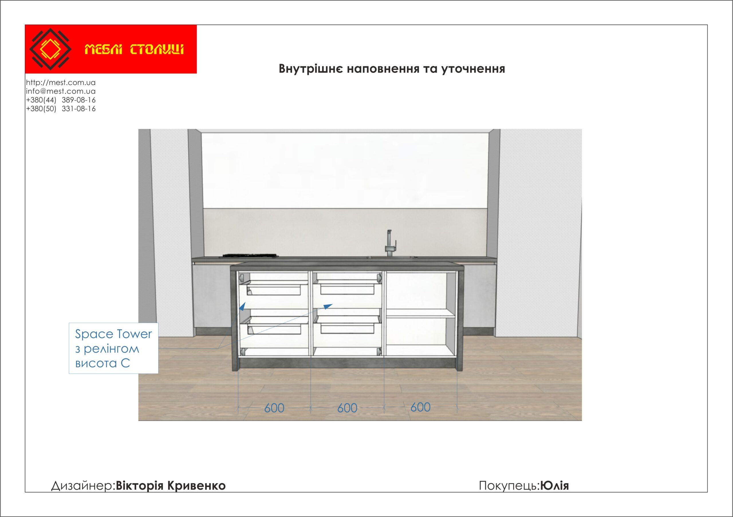 Менеджер: Тел: Номер замовлення: 09 03 17Дата початку: 28/02/2017Дата виконання: 30/04/2017Вартість: 156 000 гривень Категорії: Кухні