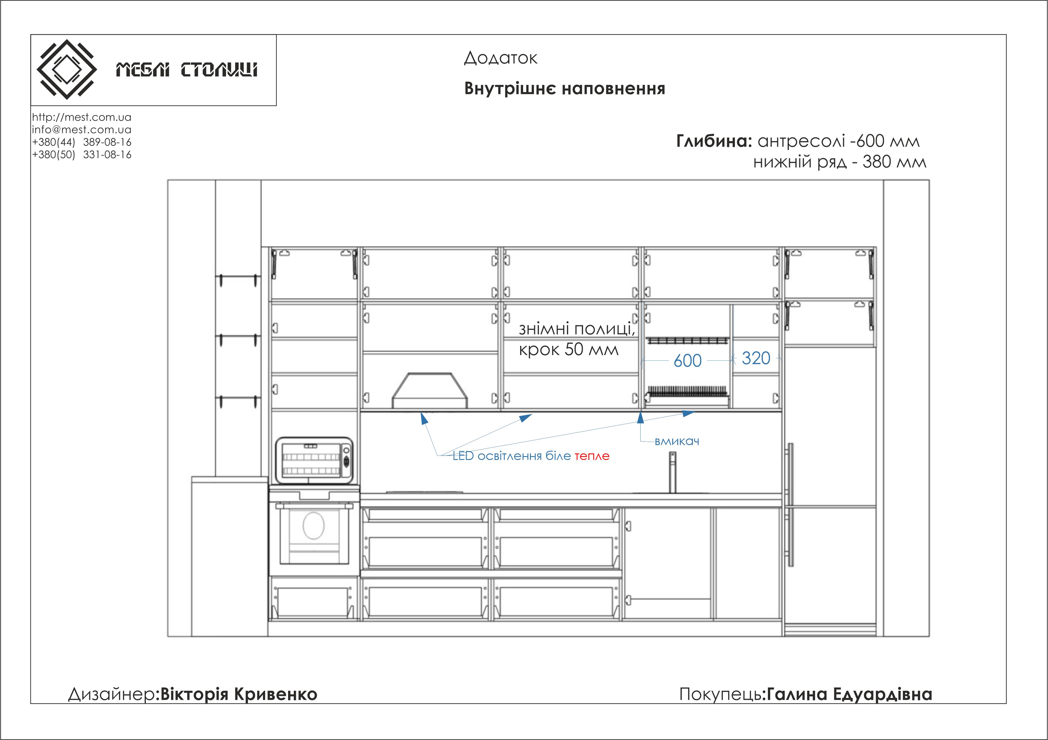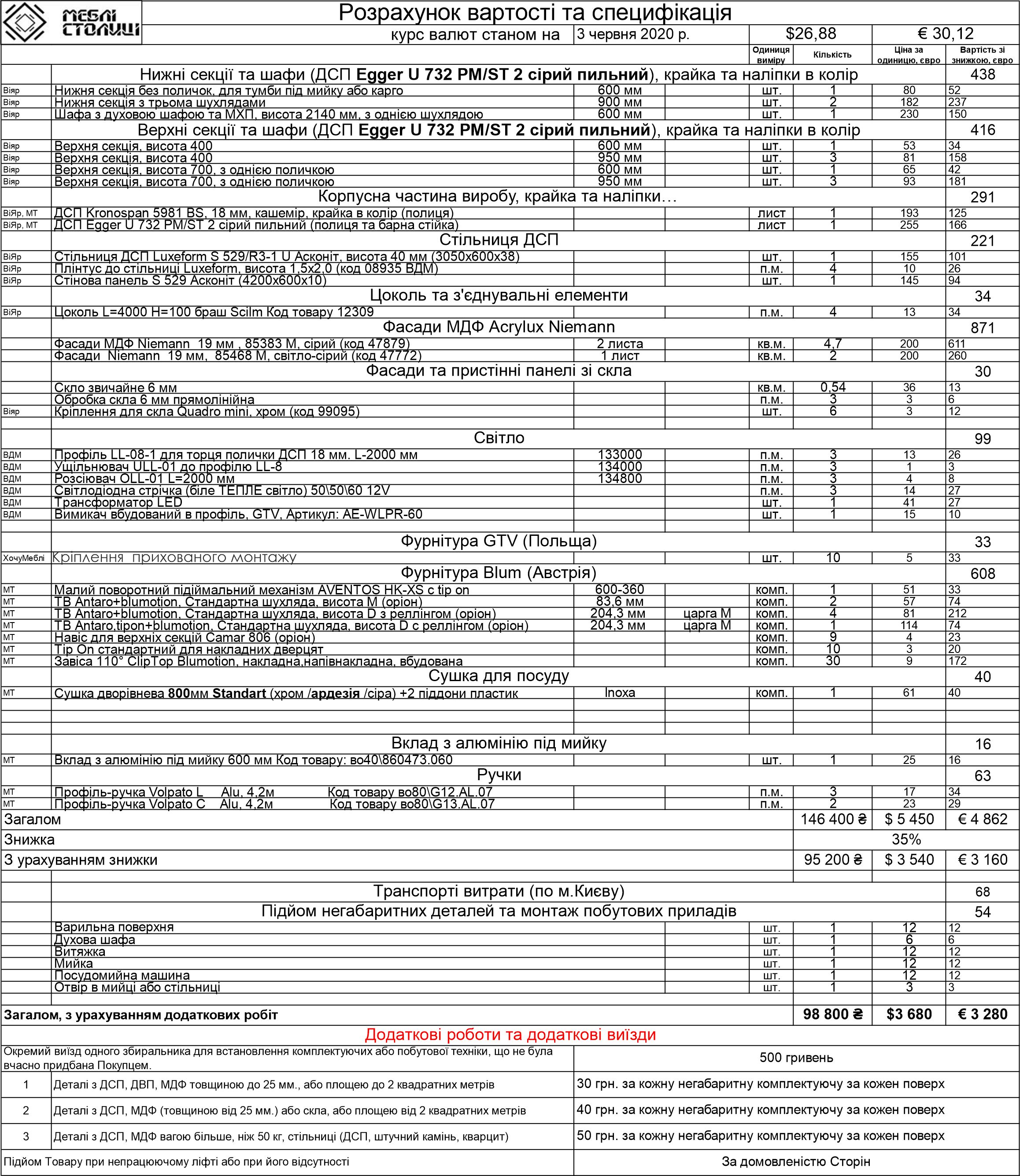 Менеджер: Тел: Номер замовлення: 20 06 20Дата початку: 09/06/2020Дата виконання: 03/08/2020Вартість: 98 800 гривень Категорії: Кухні