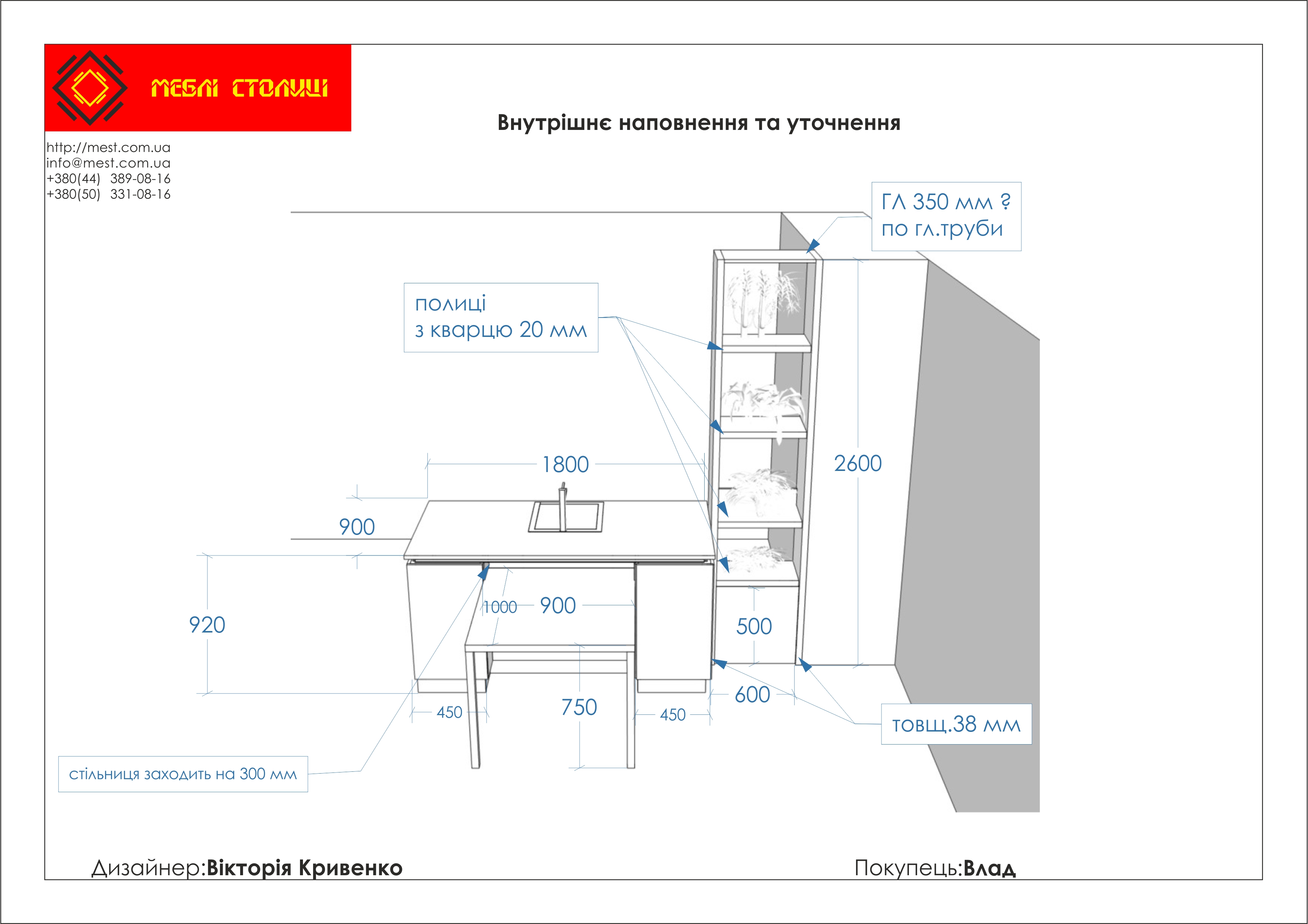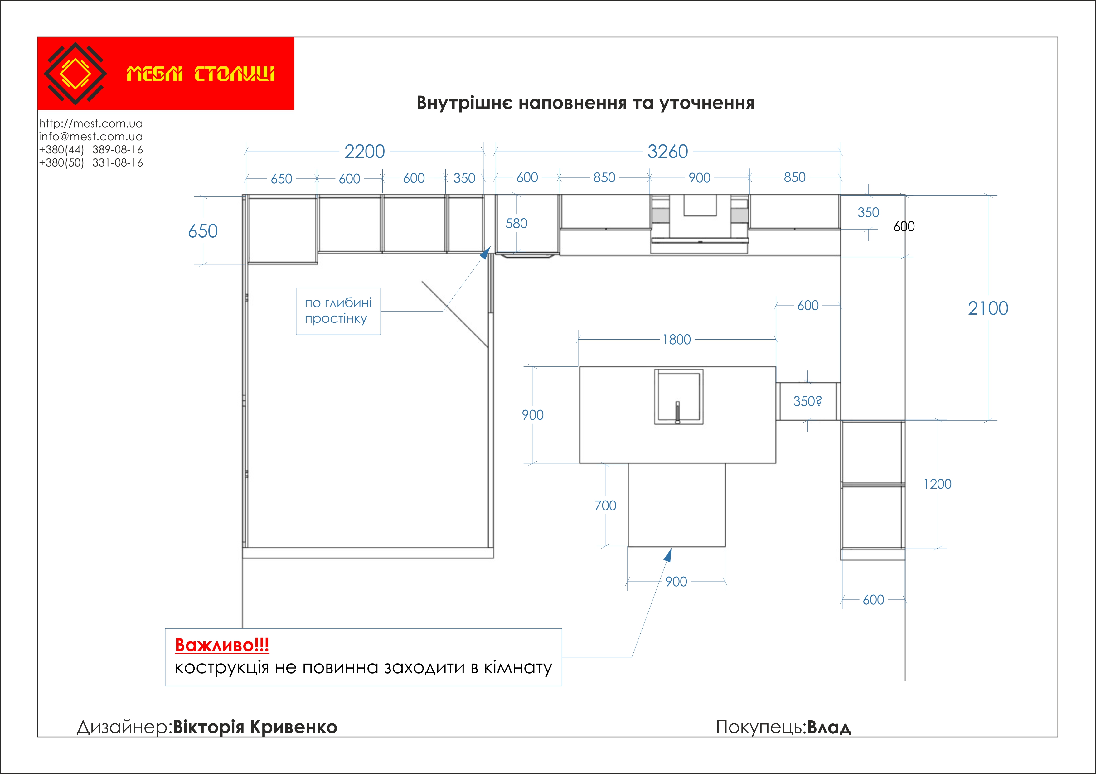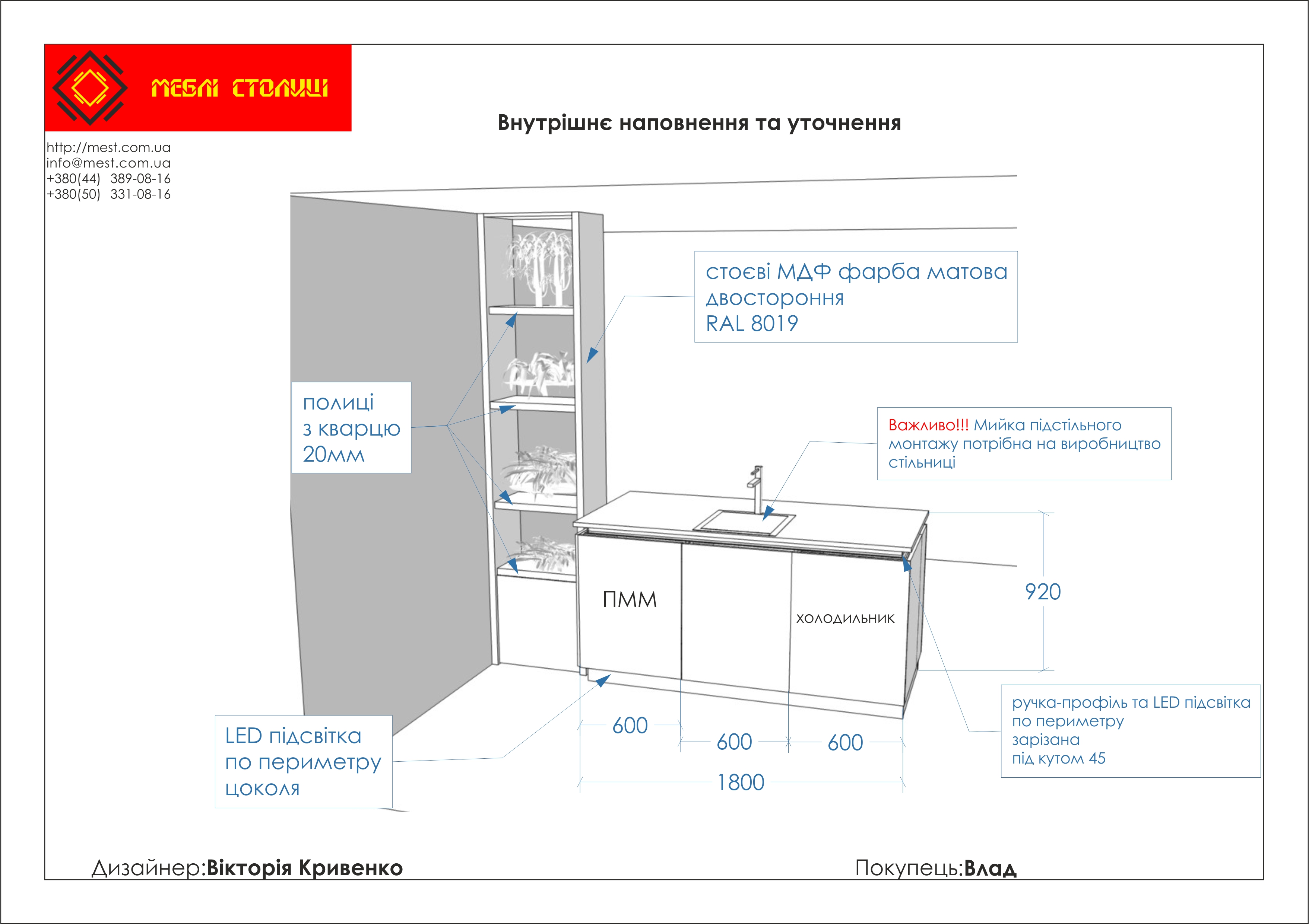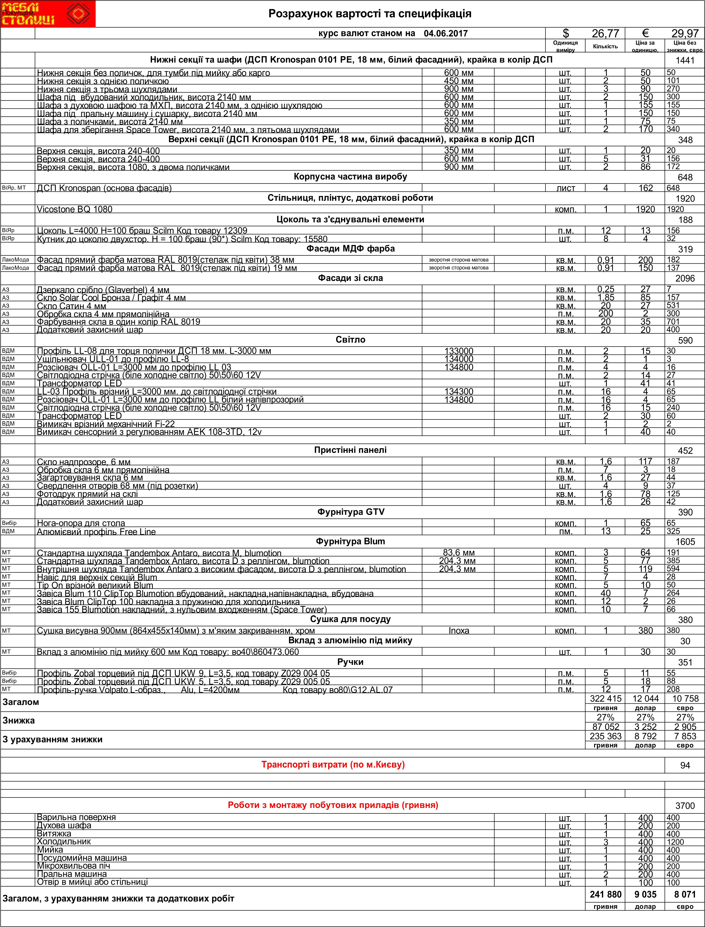 Менеджер: Тел: Номер замовлення: 22 06 17Дата початку: 03/06/2017Дата виконання: 03/08/2017Вартість: 280 000 гривень Категорії: Кухні