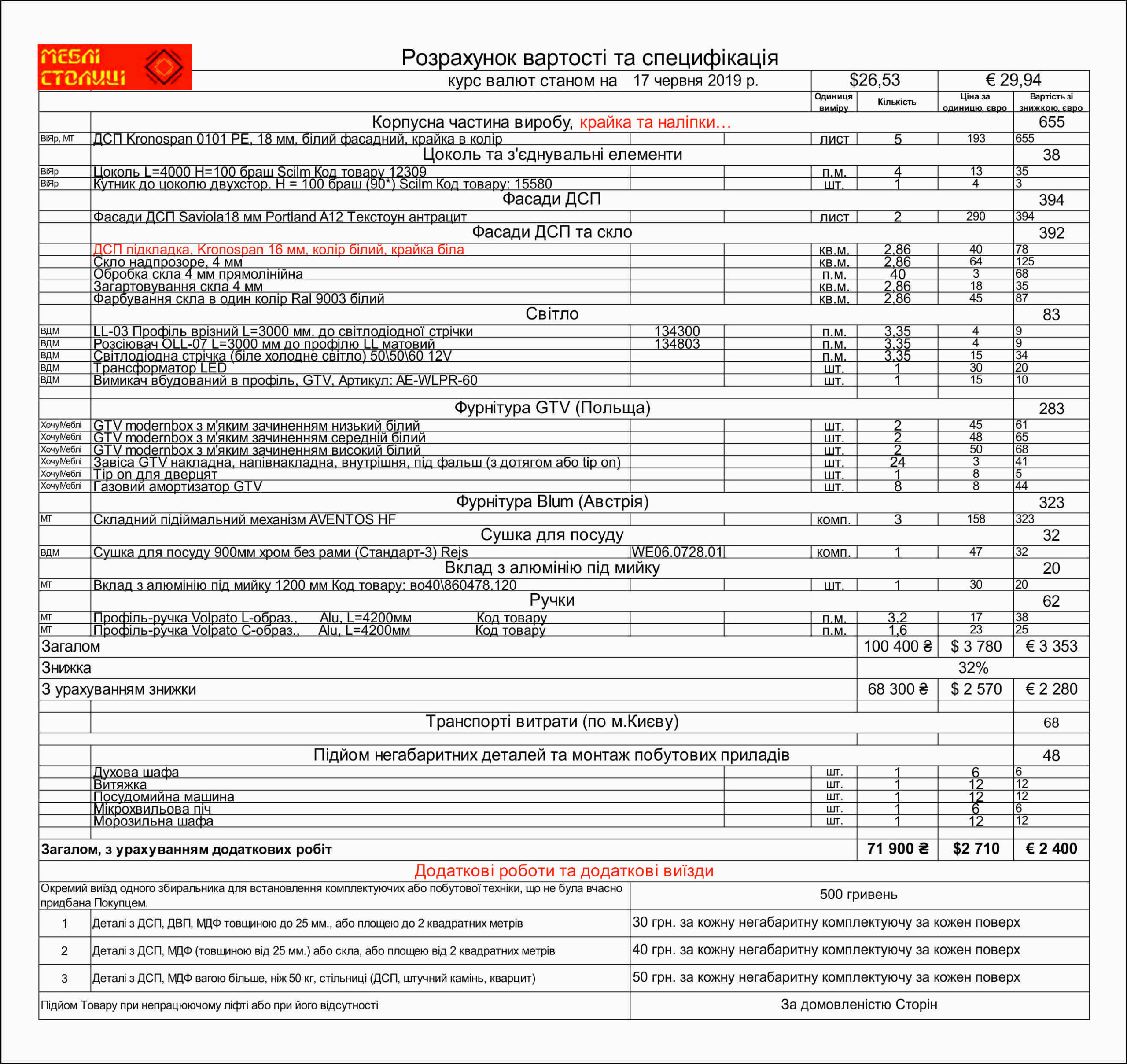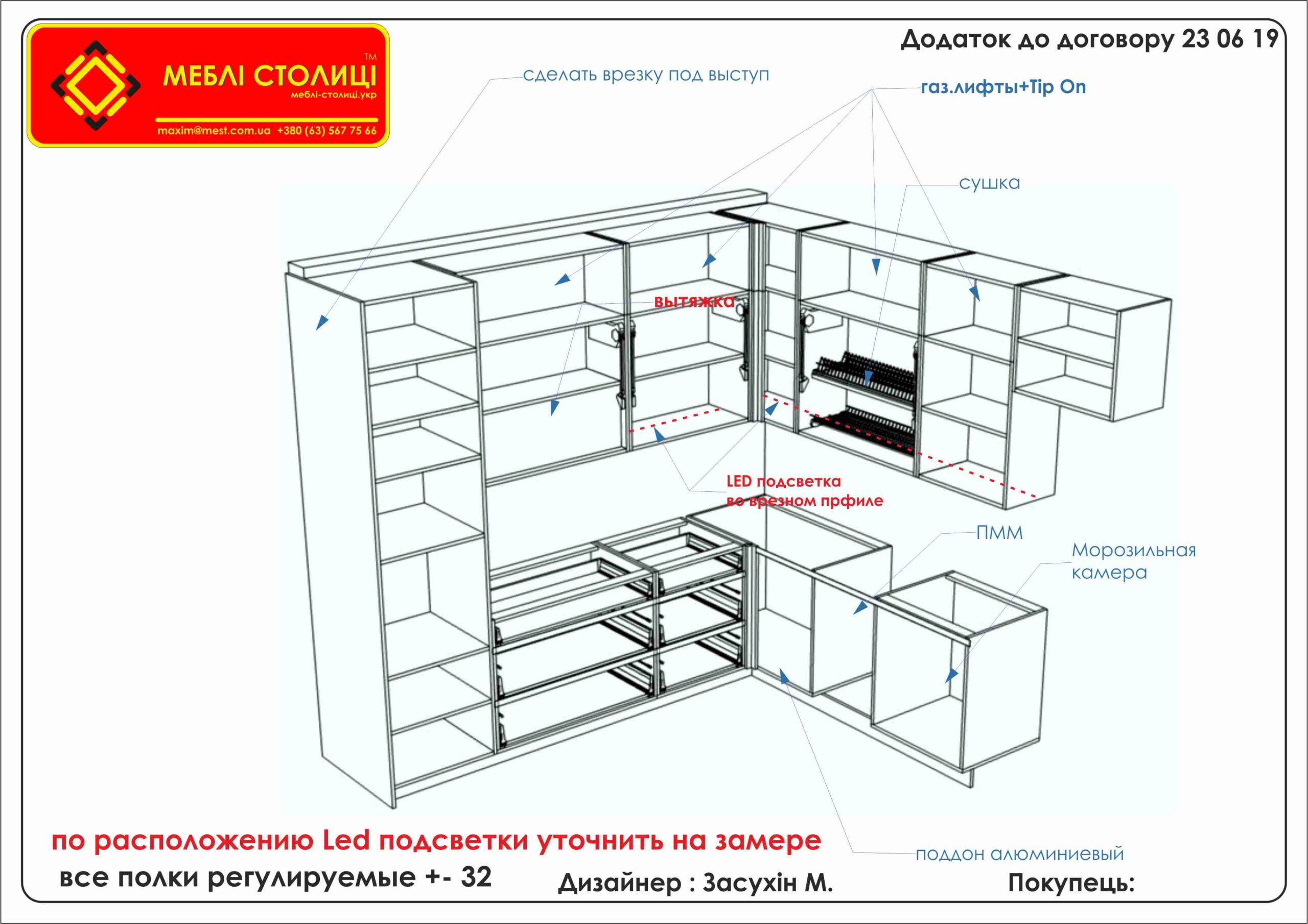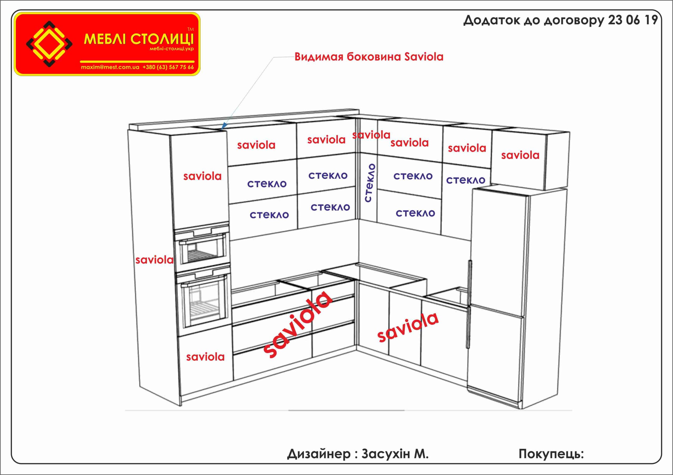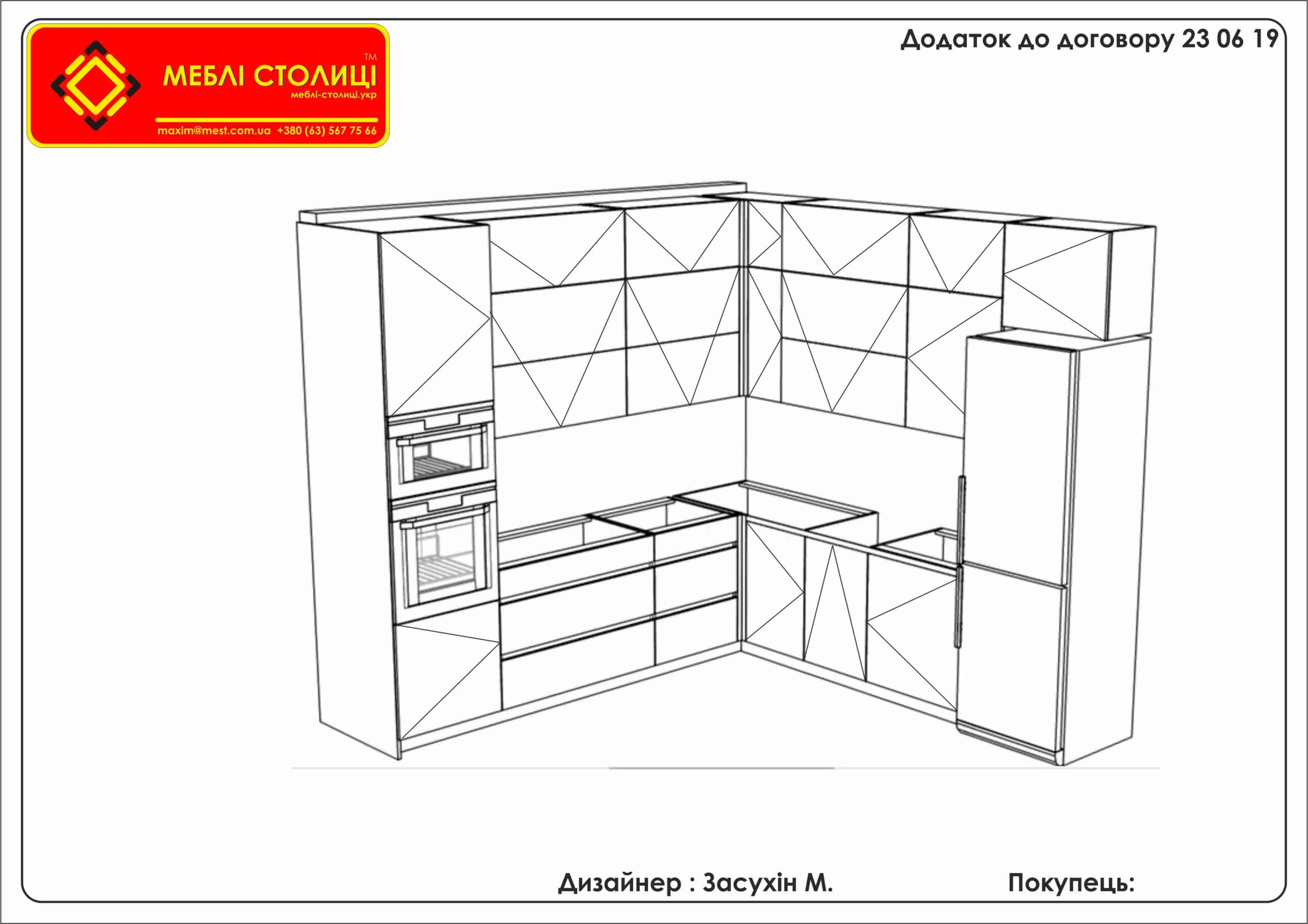 Менеджер: Тел: Номер замовлення: 24 06 19 Дата початку: 25/06/2019Дата виконання: 18/08/2019Вартість: 60 000 гривень Категорії: Кухні