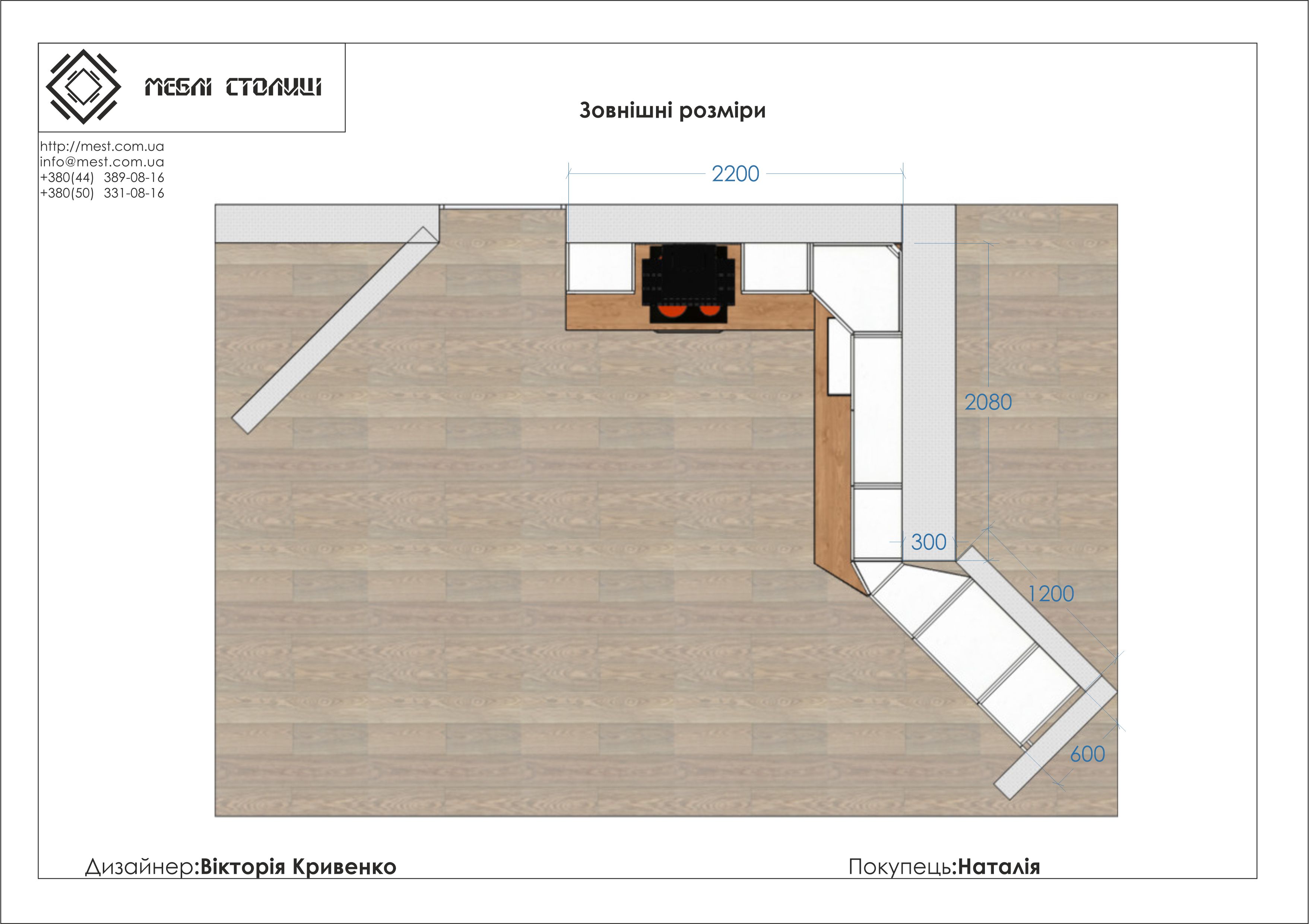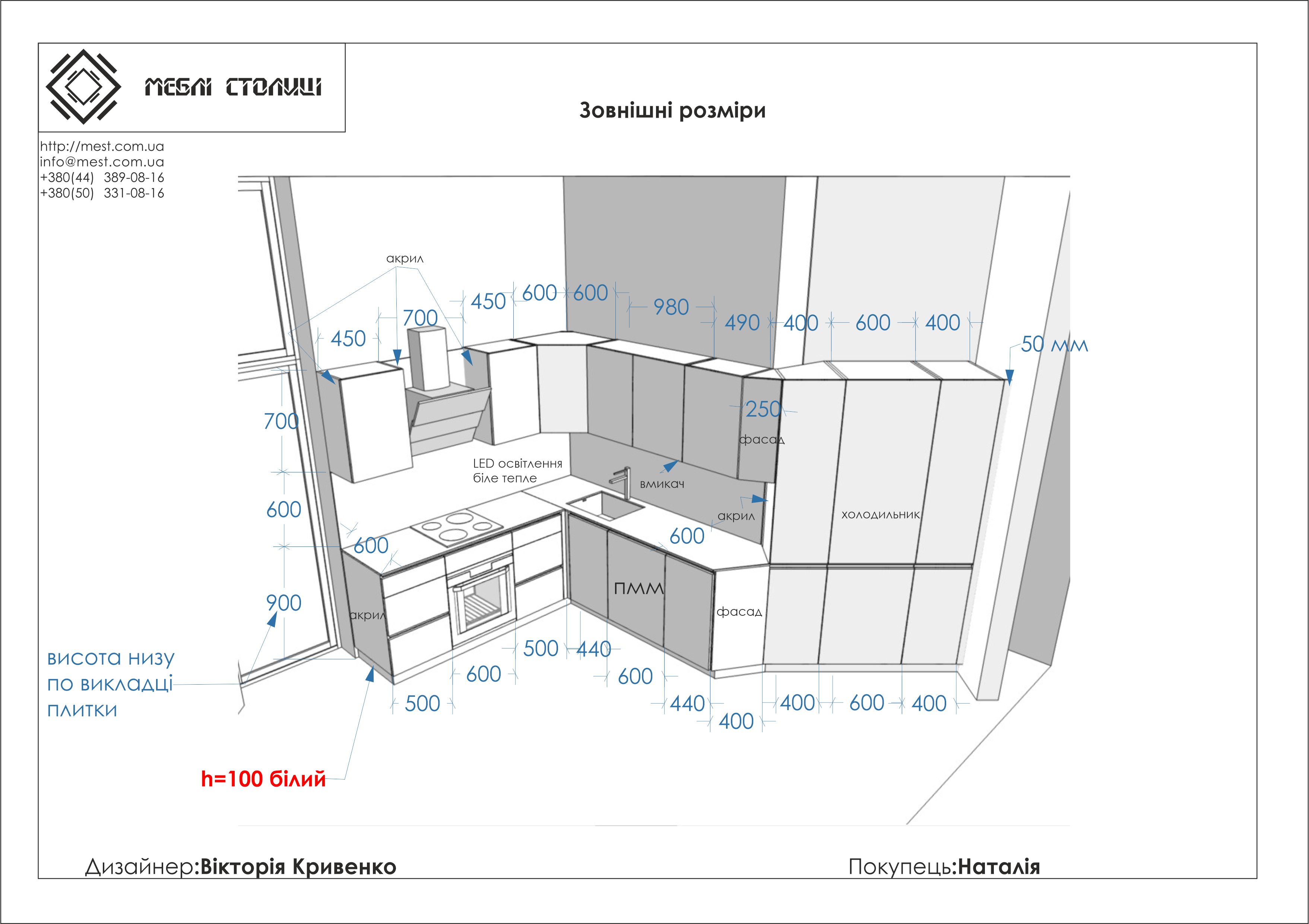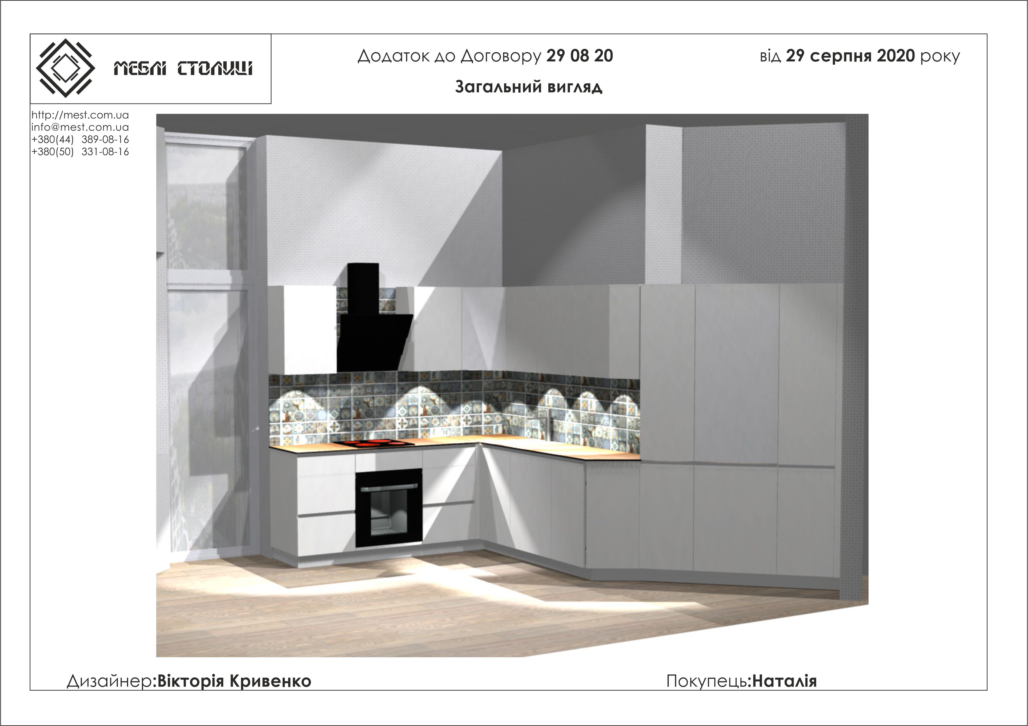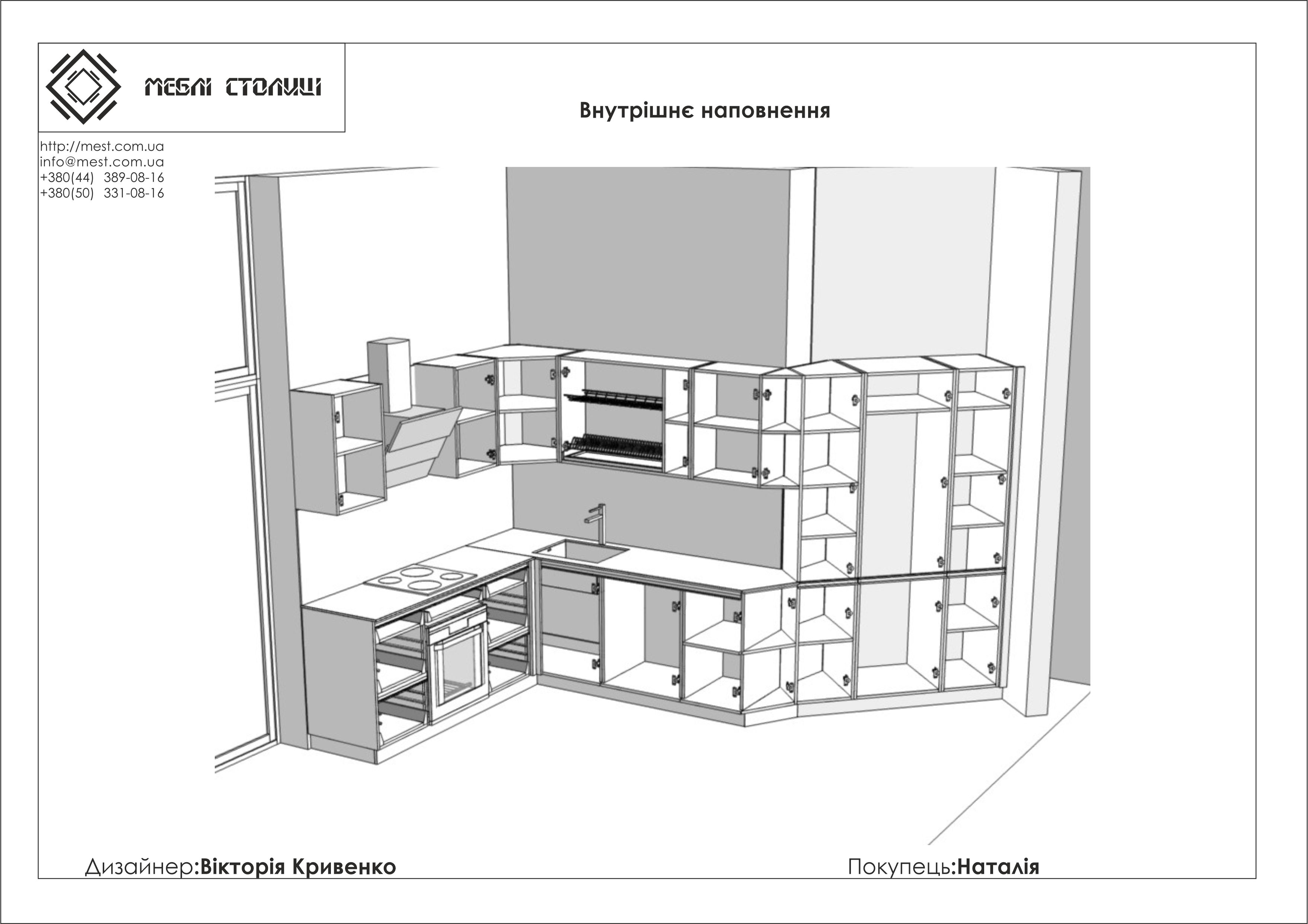 Менеджер: Тел: Номер замовлення: 29 08 20Дата початку: 26/08/2020Дата виконання: 27/11/2020Вартість: 153 500 гривень Категорії: Кухні