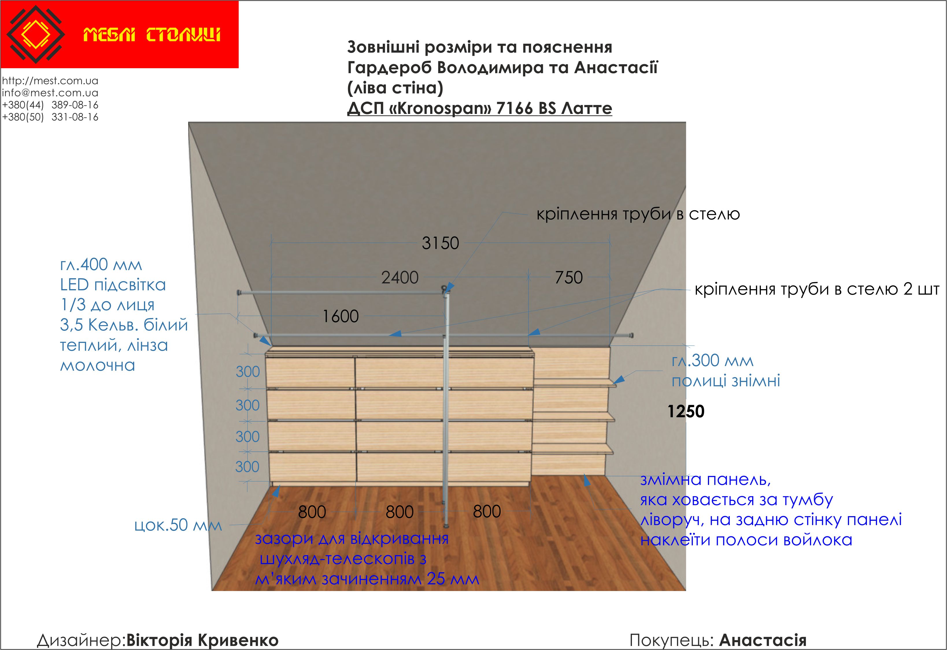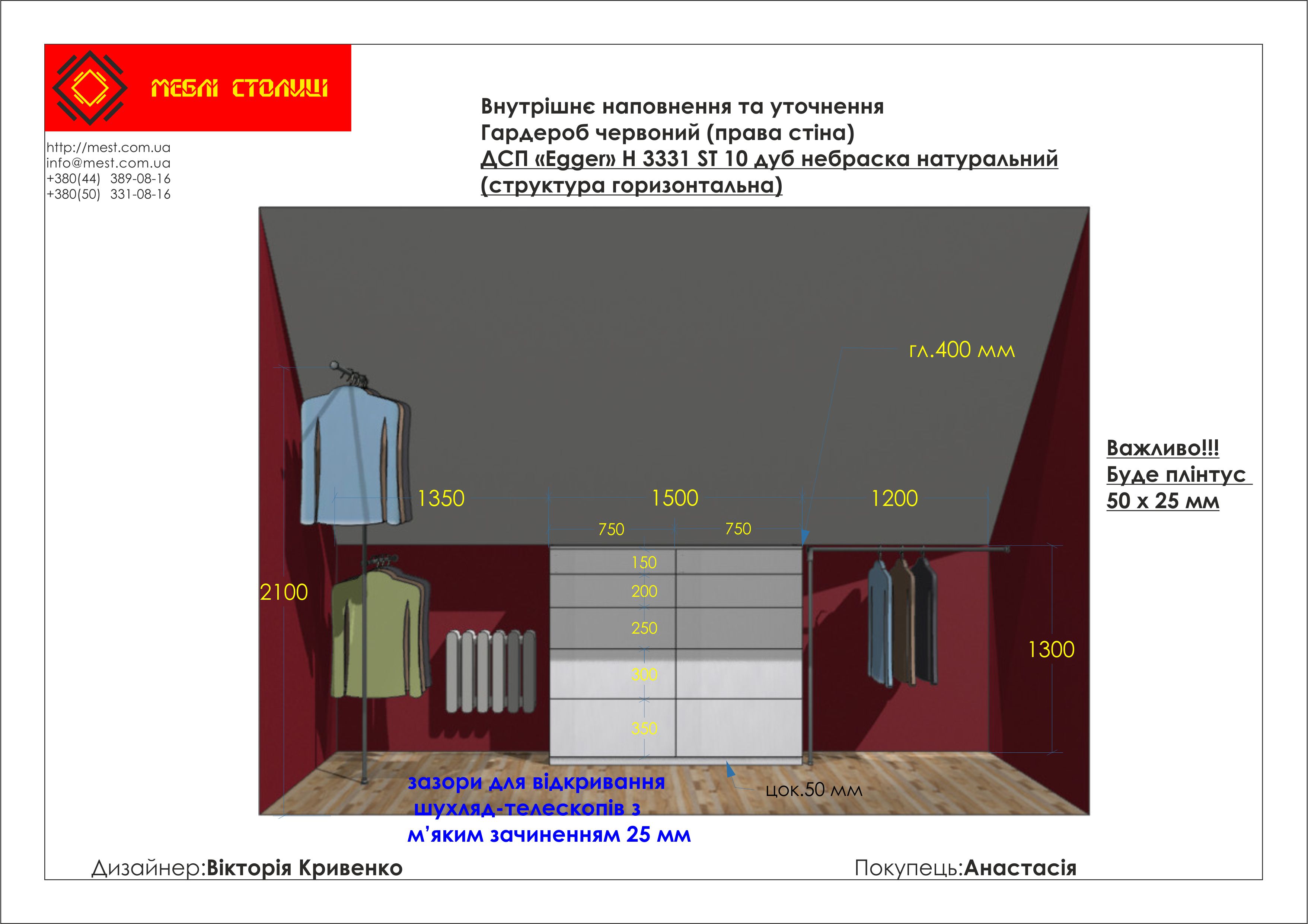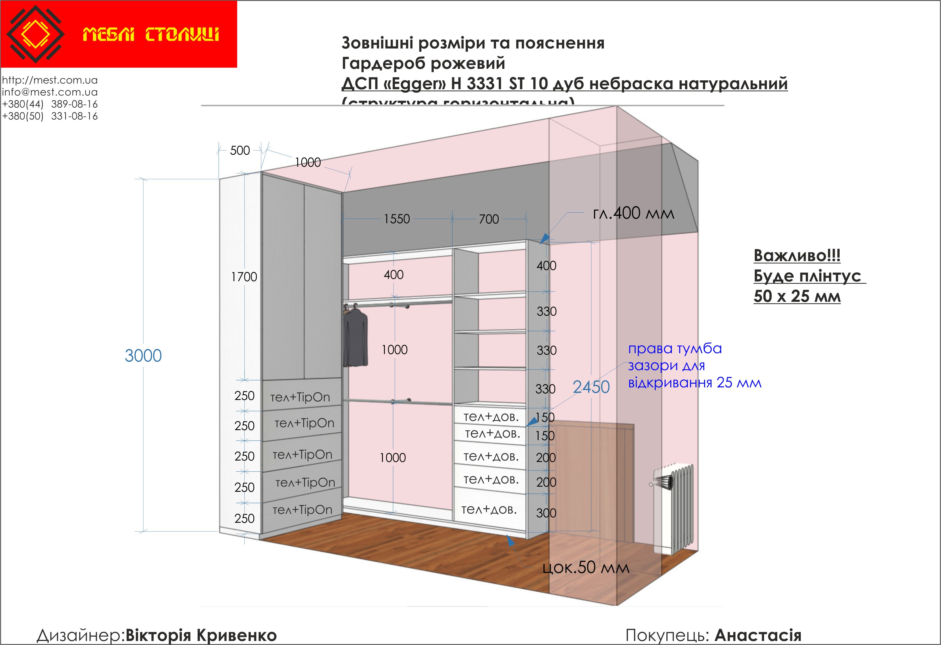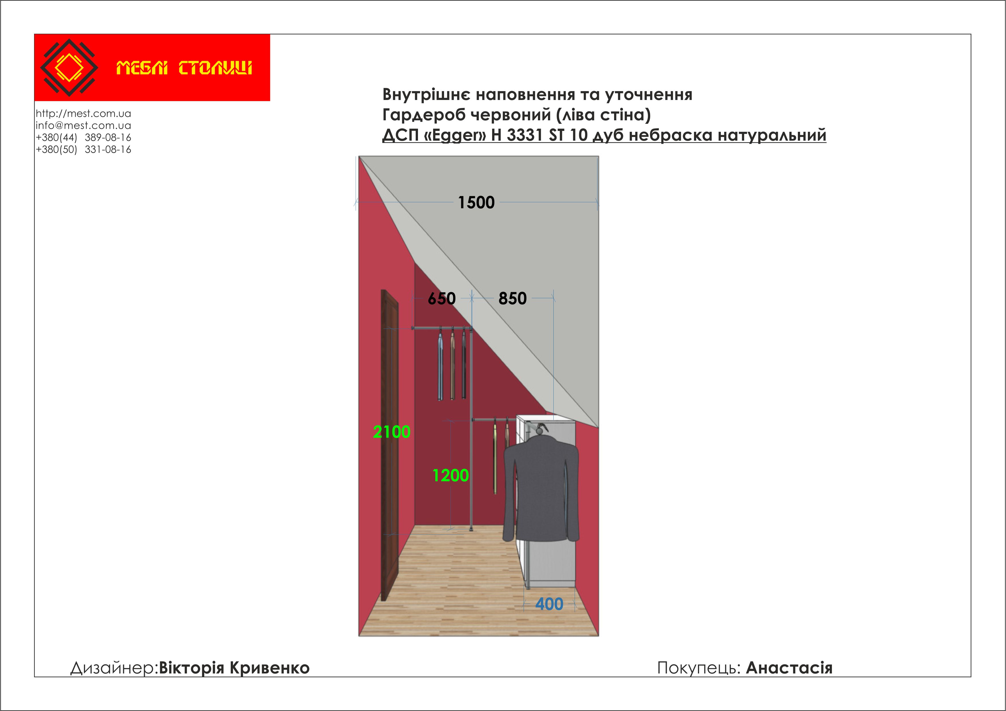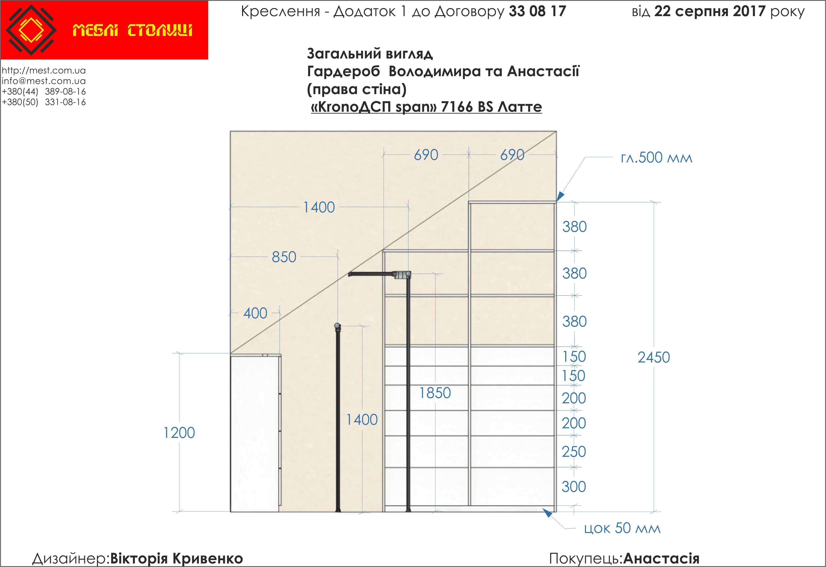 Менеджер: Тел: Номер замовлення: 33 08 17Дата початку: 21/08/2017Дата виконання: 19/10/2017Вартість: 112 460 гривень Категорії: Гардеробні
