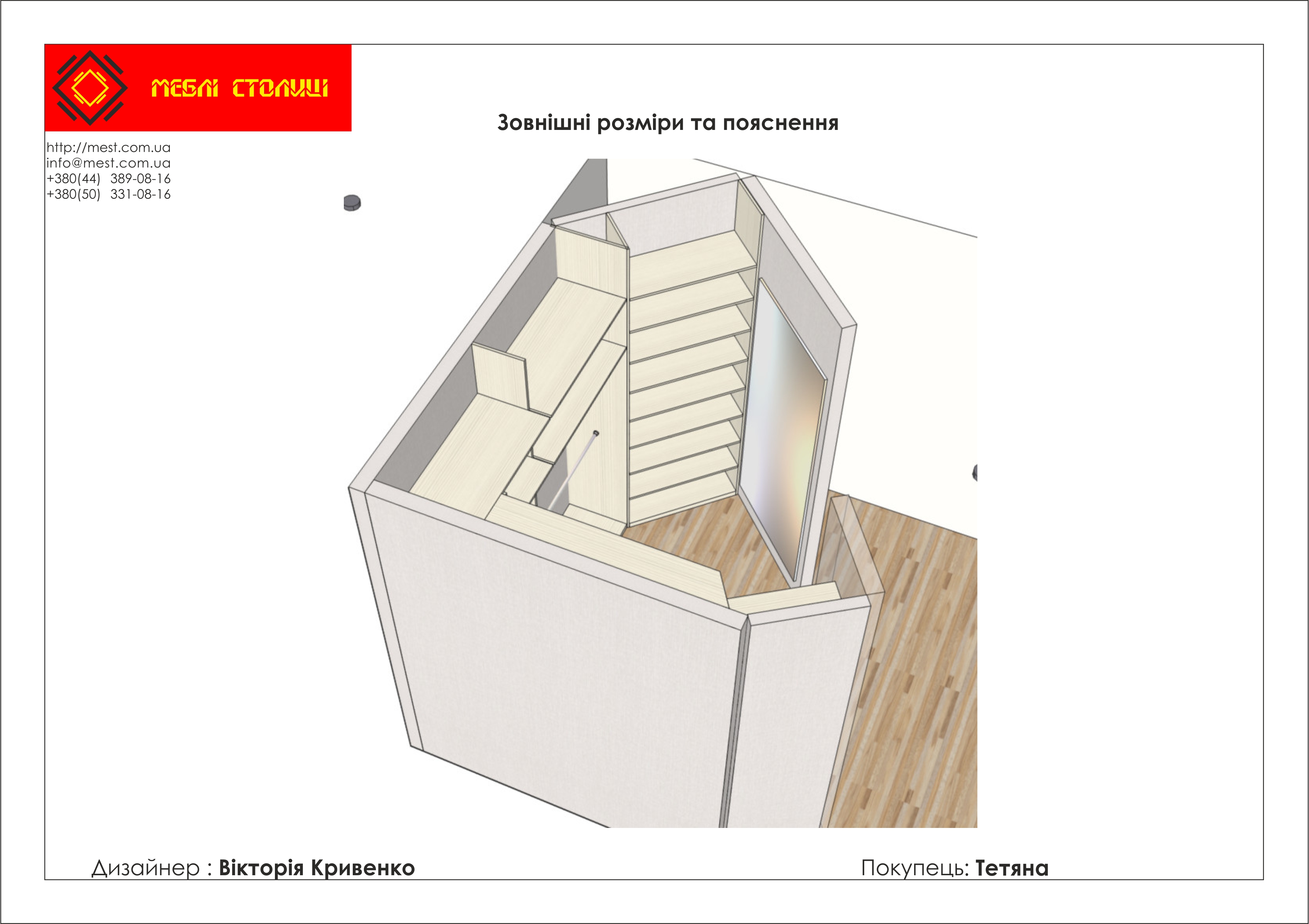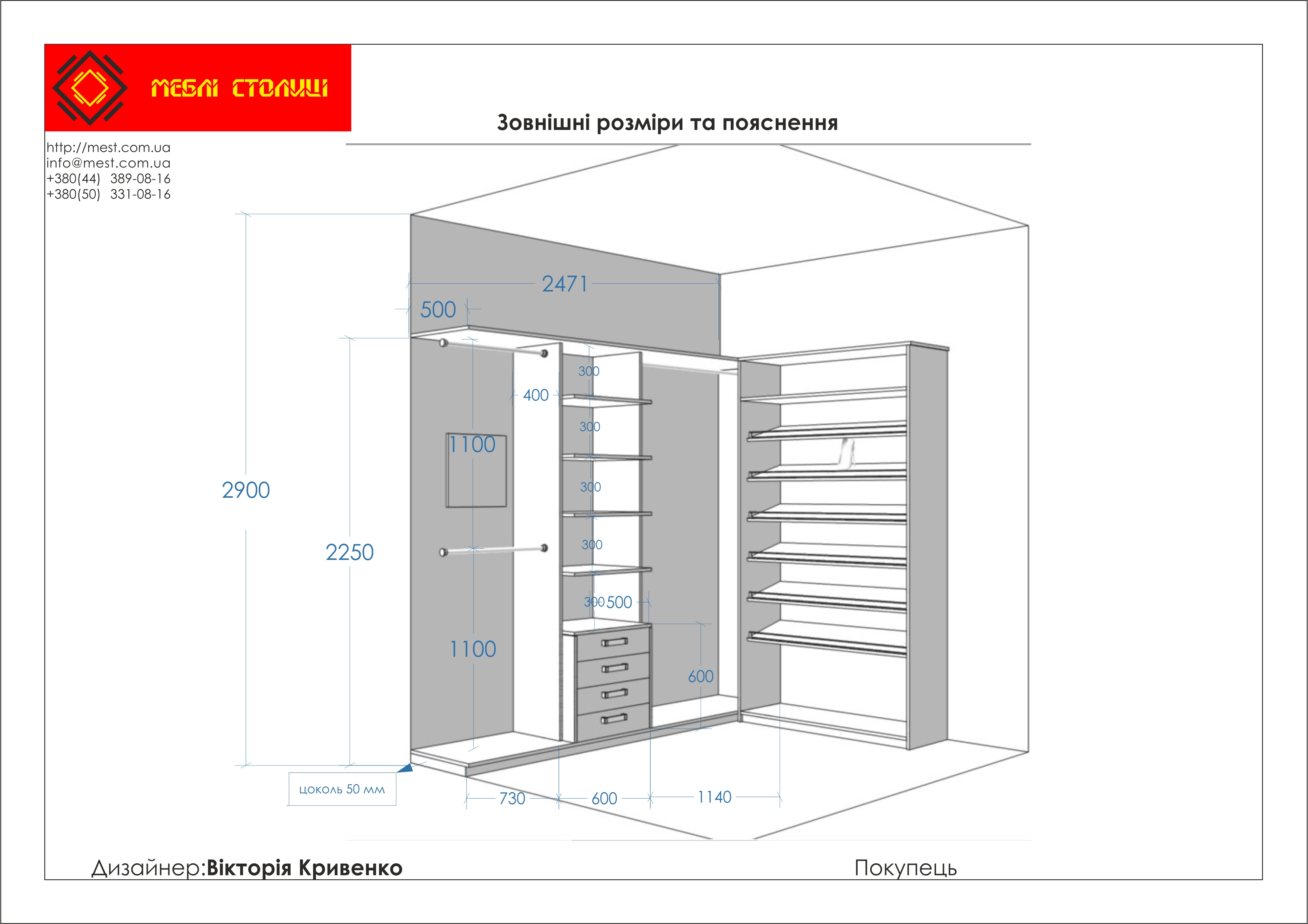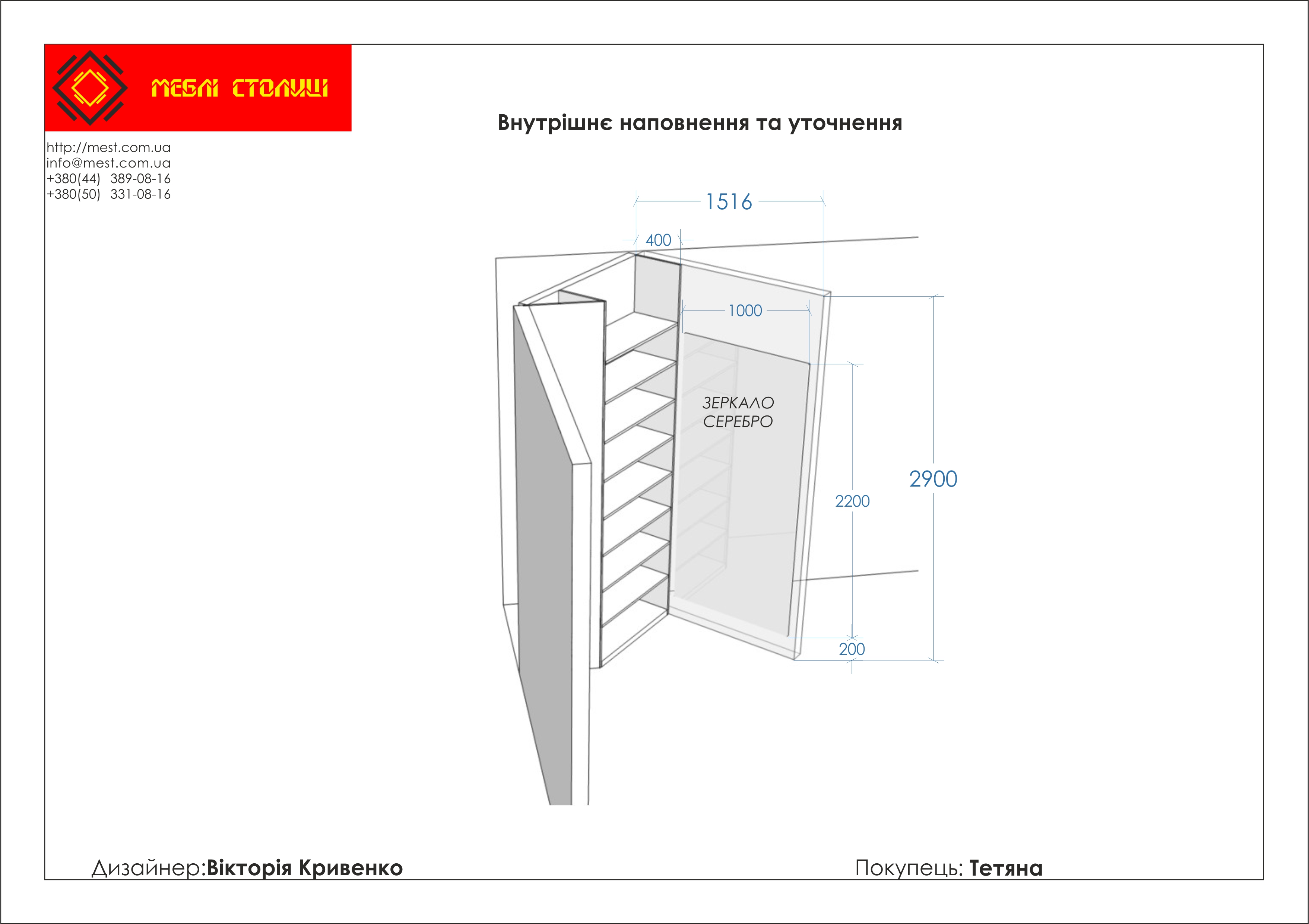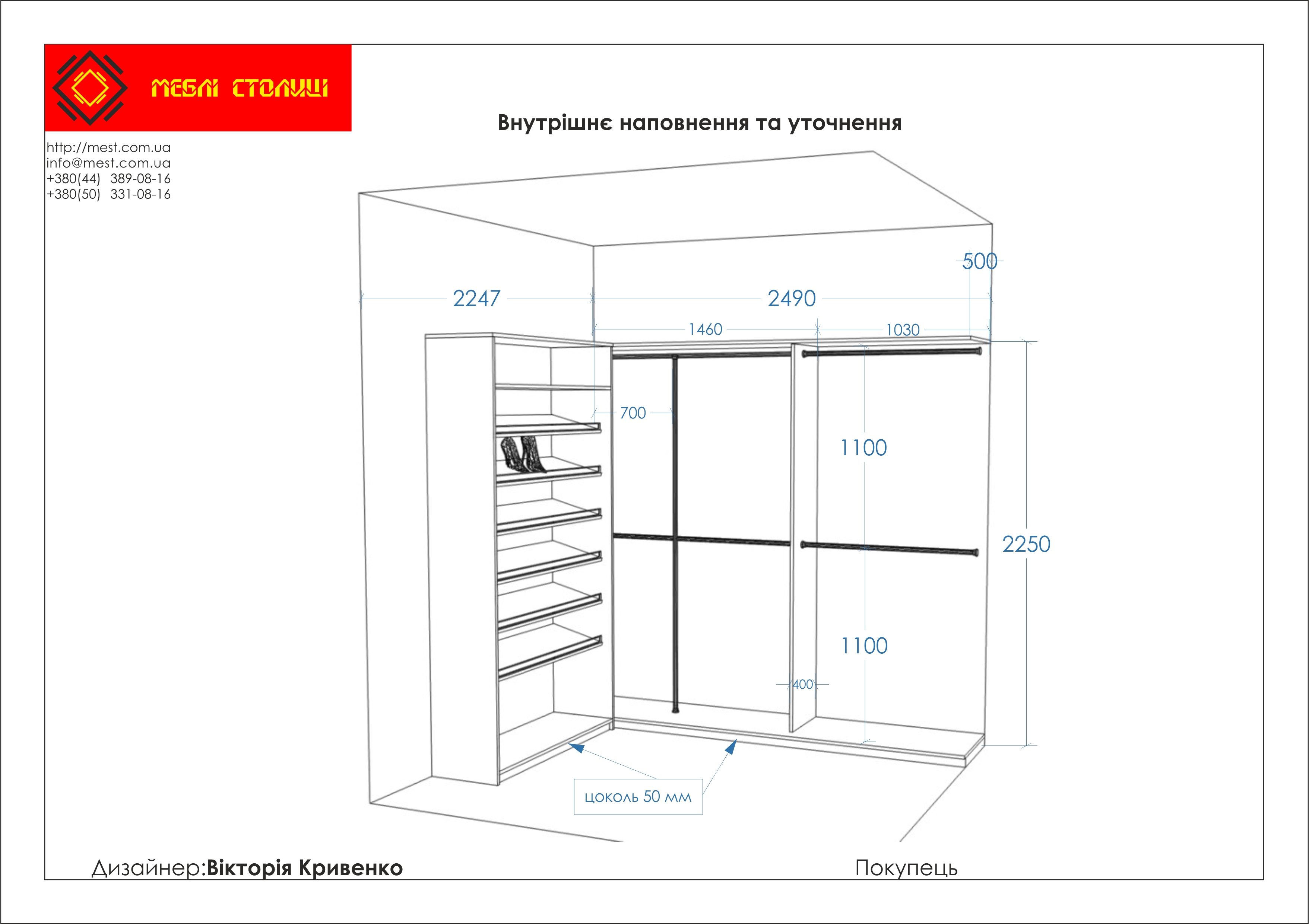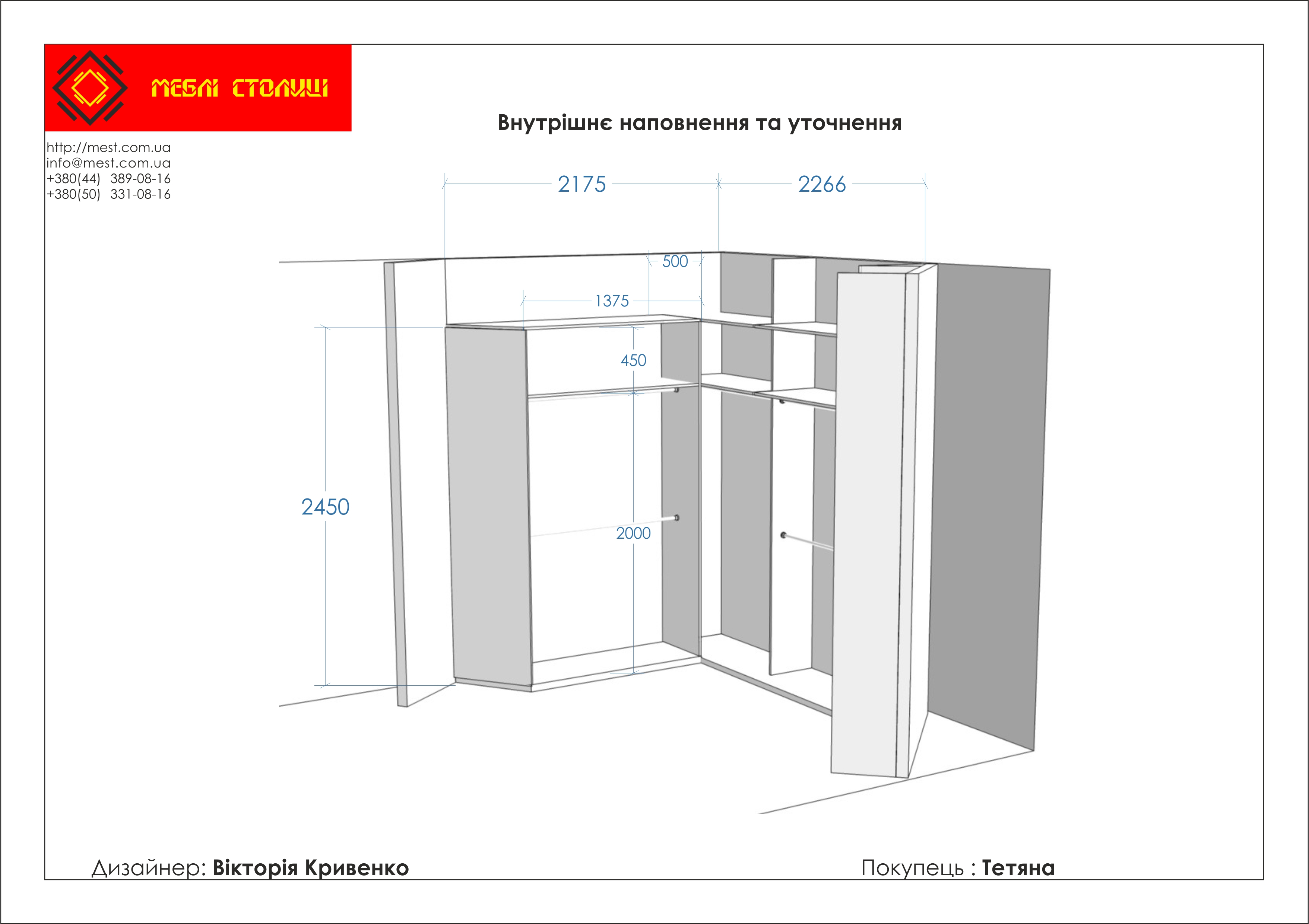 Менеджер: Тел: Номер замовлення: 35 08 16Дата початку: 12/08/2016Дата виконання: 12/10/2016Вартість: 106 300 гривень Категорії: Гардеробні