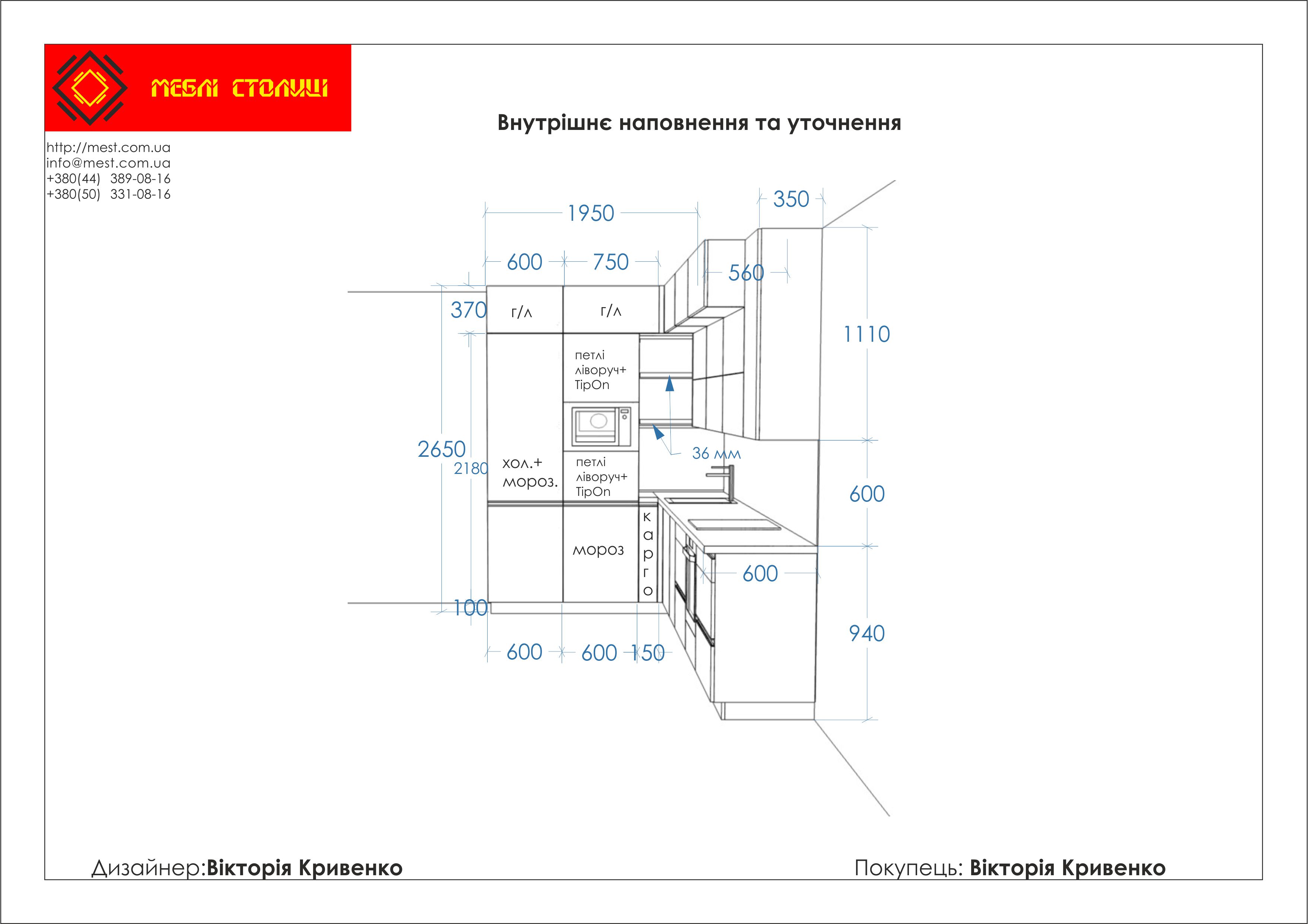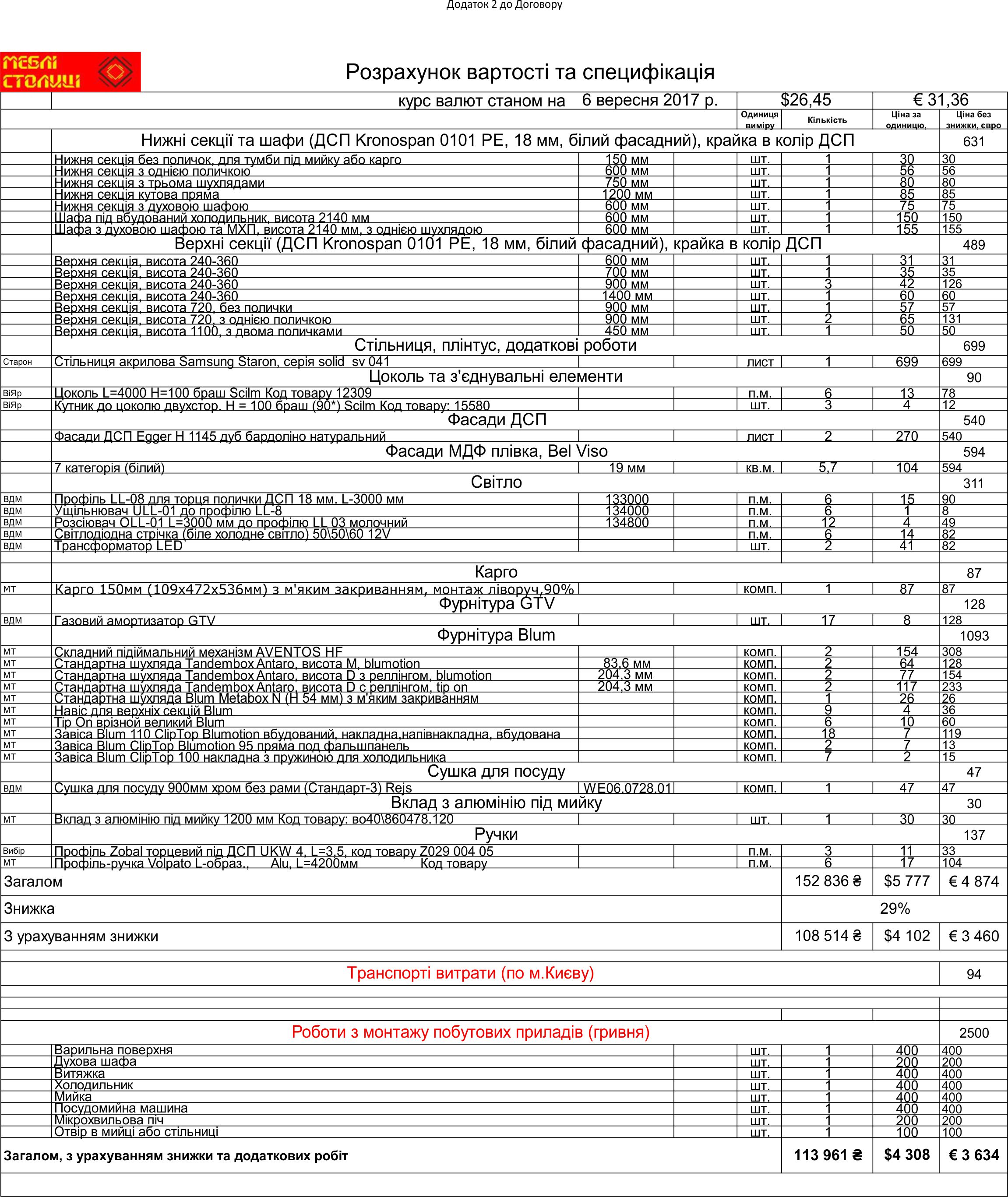 Менеджер: Тел: Номер замовлення: 37 09 17Дата початку: 06/09/2017Дата виконання: 06/11/2017Вартість: 113 900 гривень Категорії: Кухні