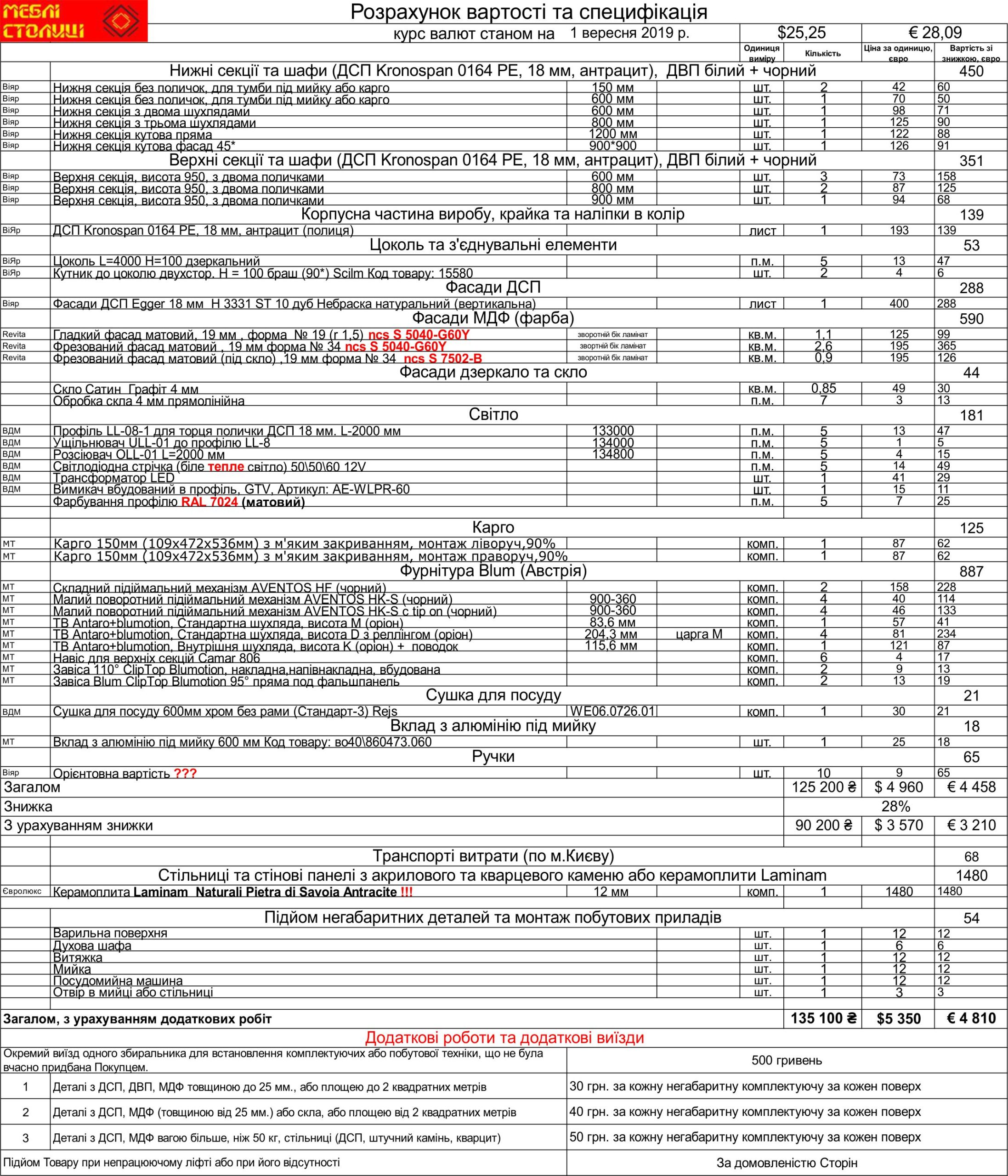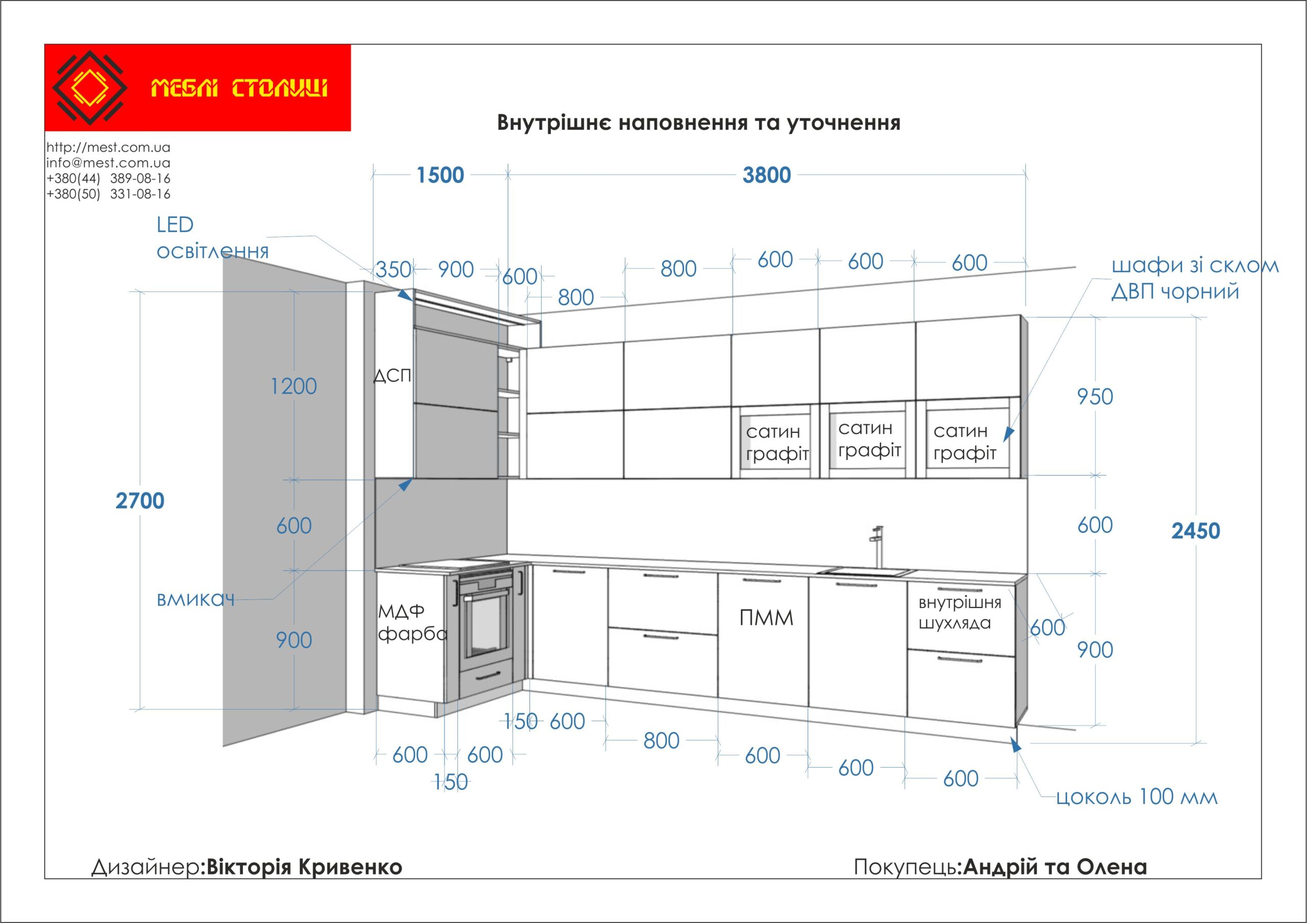 Менеджер: Тел: Номер замовлення: 38 08 19Дата початку: 25/11/2019Дата виконання: 26/01/2020Вартість: 135 000 гривень Категорії: Кухні