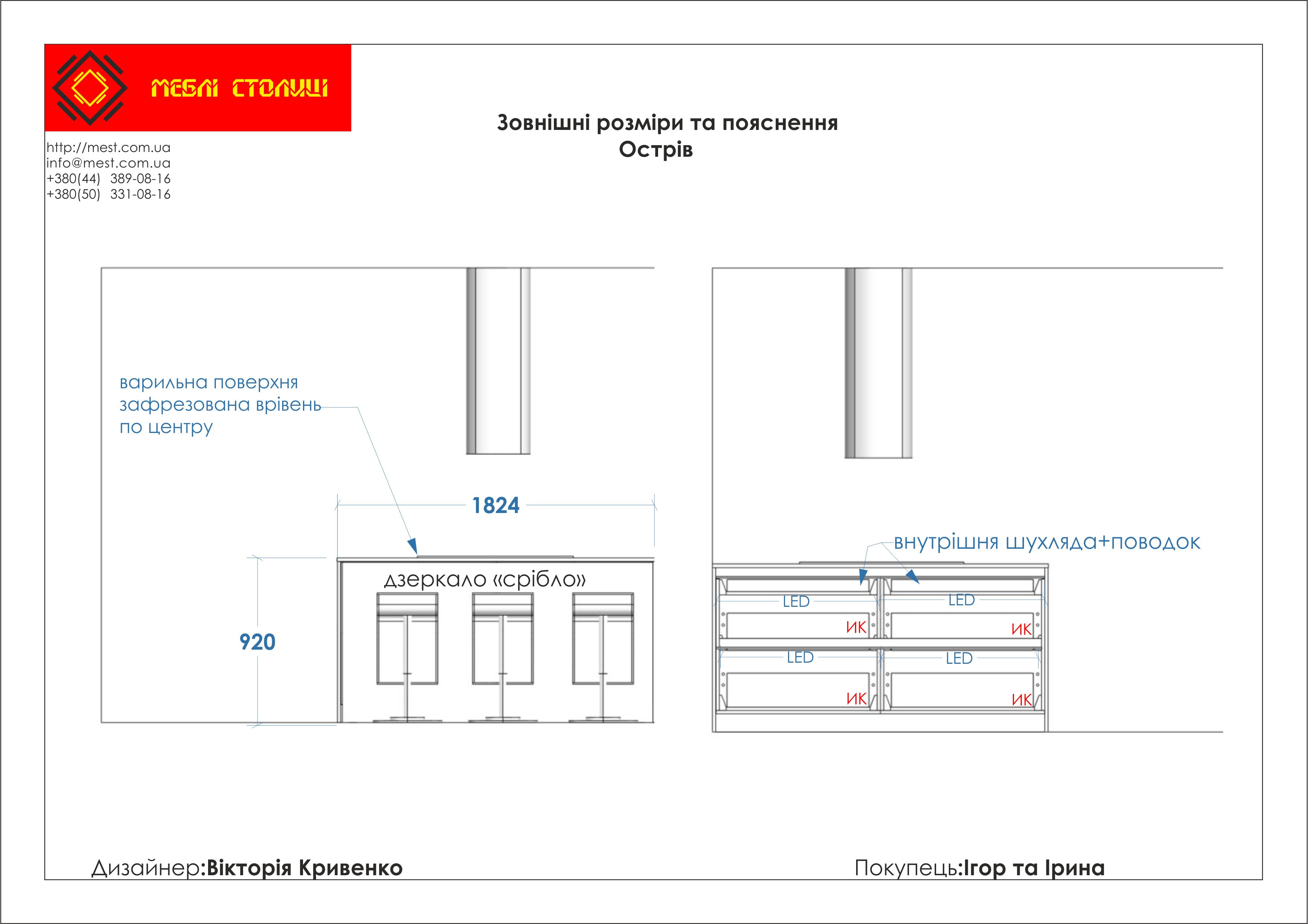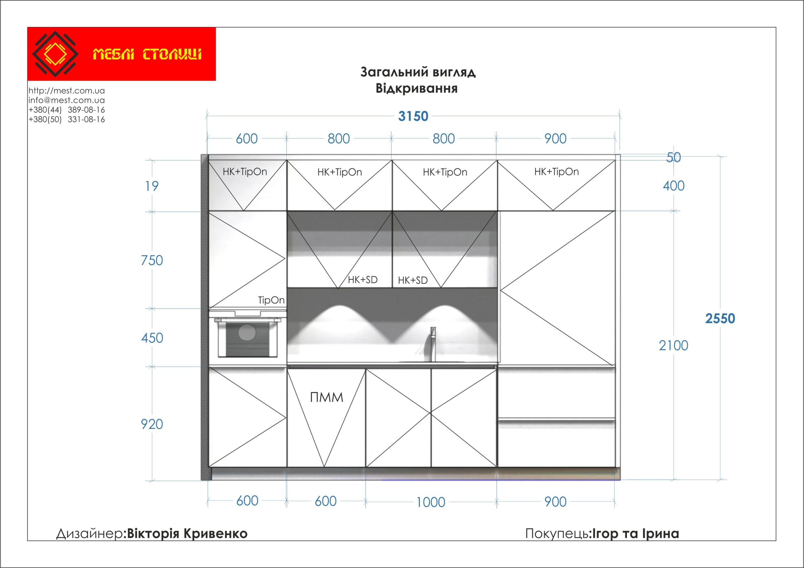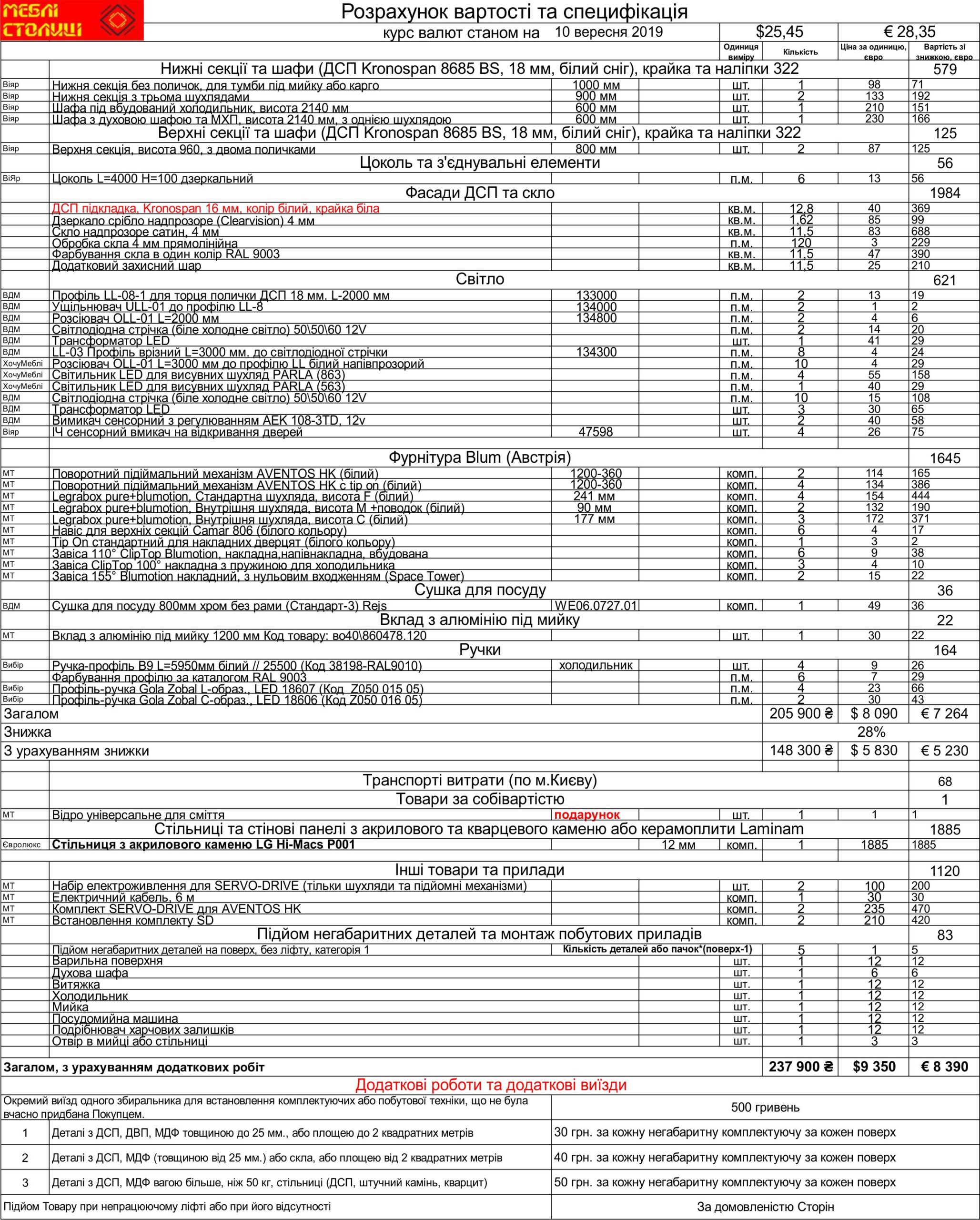 Менеджер: Тел: Номер замовлення: 40 09 19Дата початку: 15/09/2019Дата виконання: 27/10/2019Вартість: 237 900 гривень Категорії: Кухні