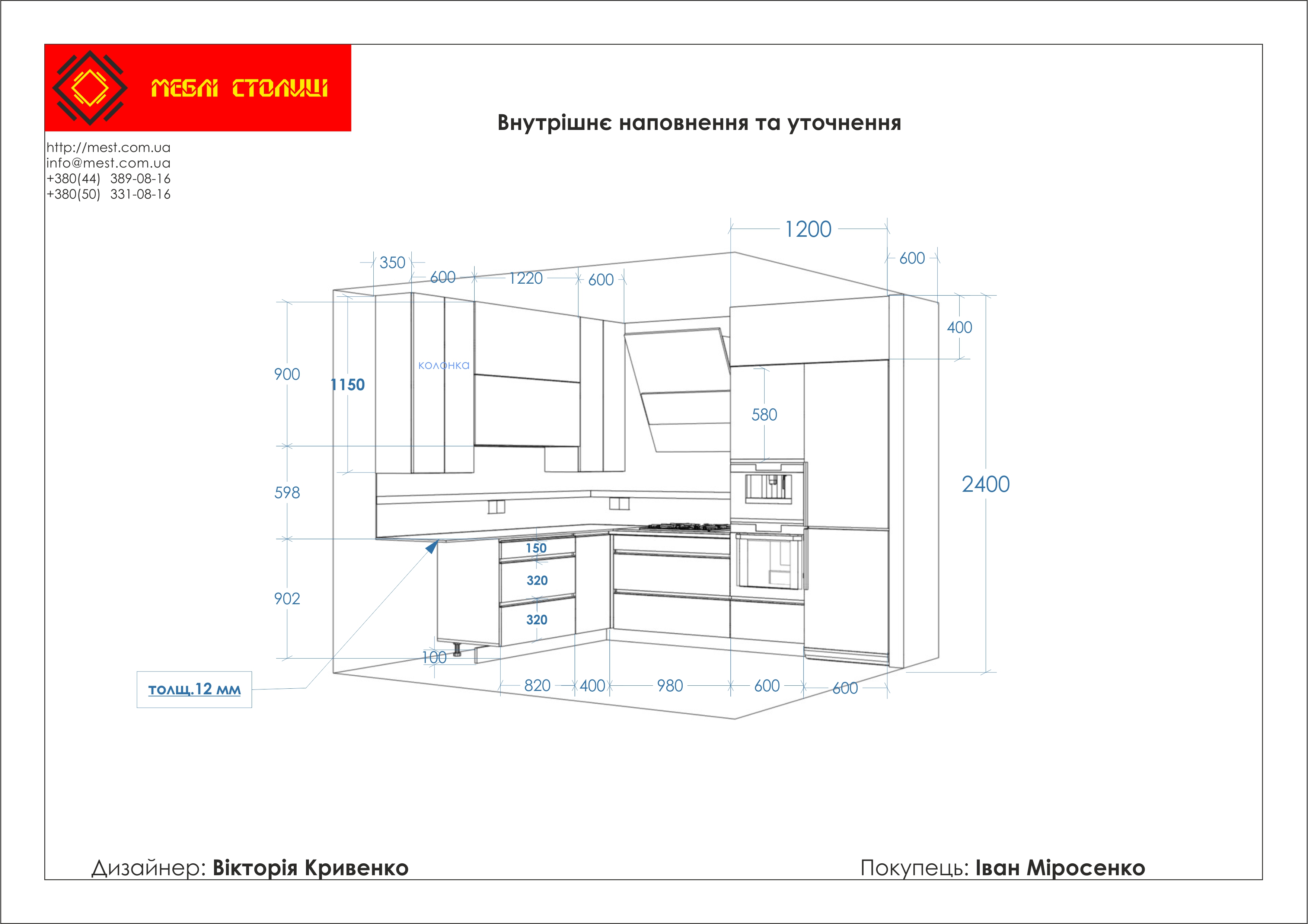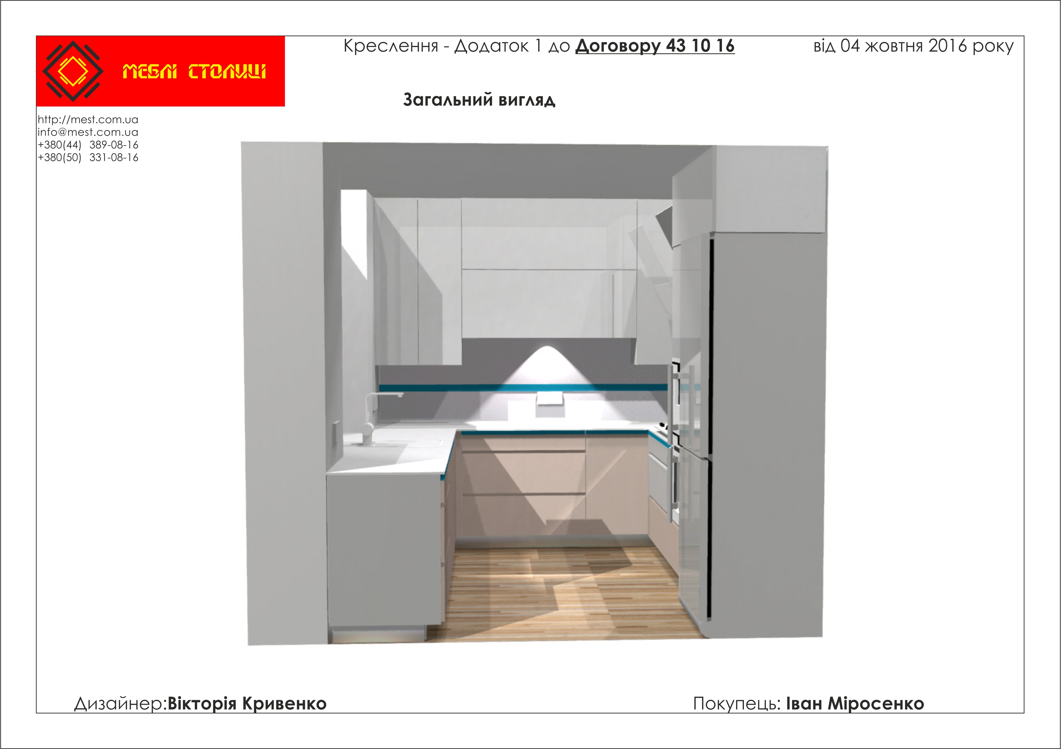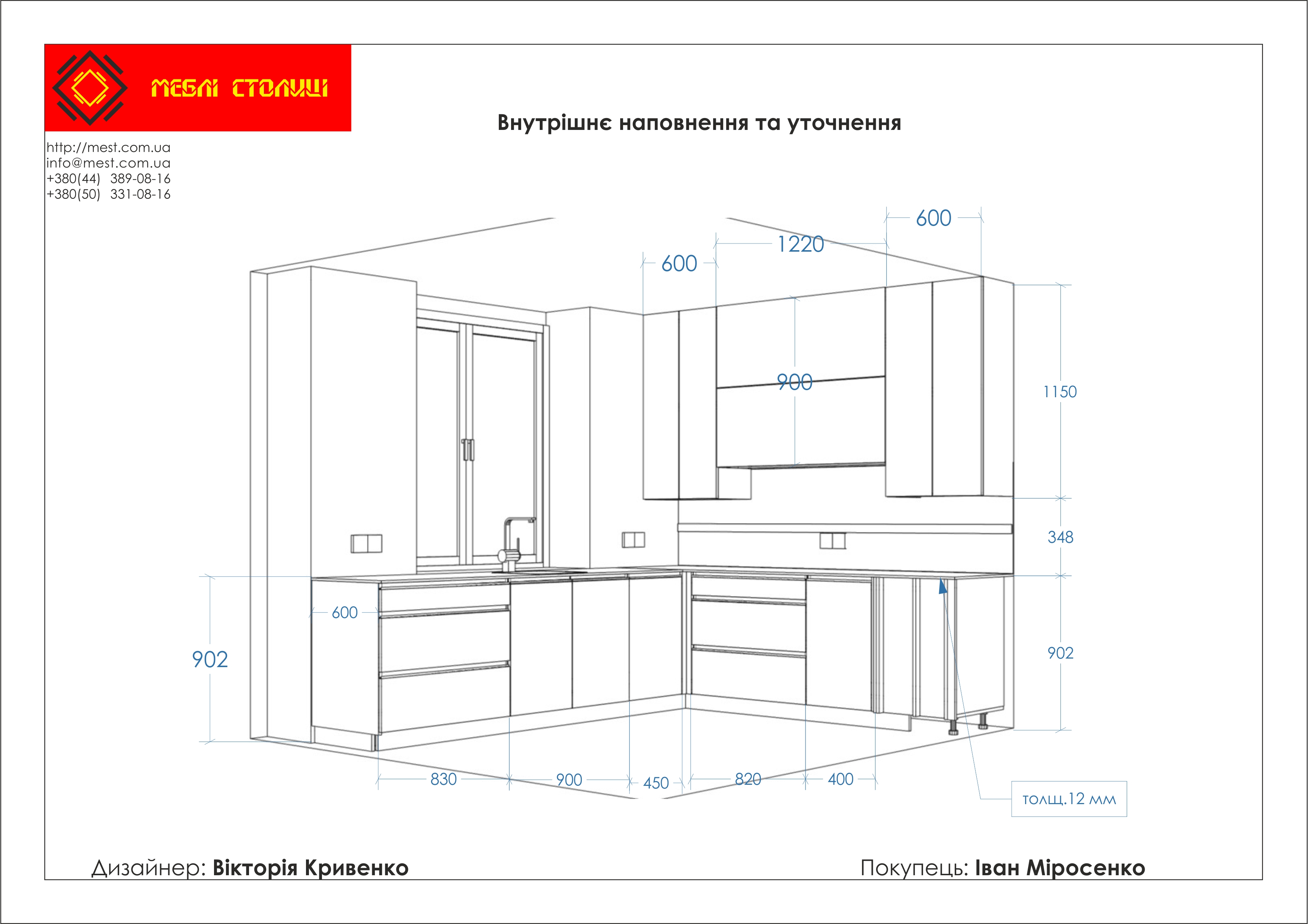 Менеджер: Тел: Номер замовлення: 43 10 16Дата початку: 03/10/2016Дата виконання: 03/12/2019Вартість: 200 898 гривень Категорії: Кухні