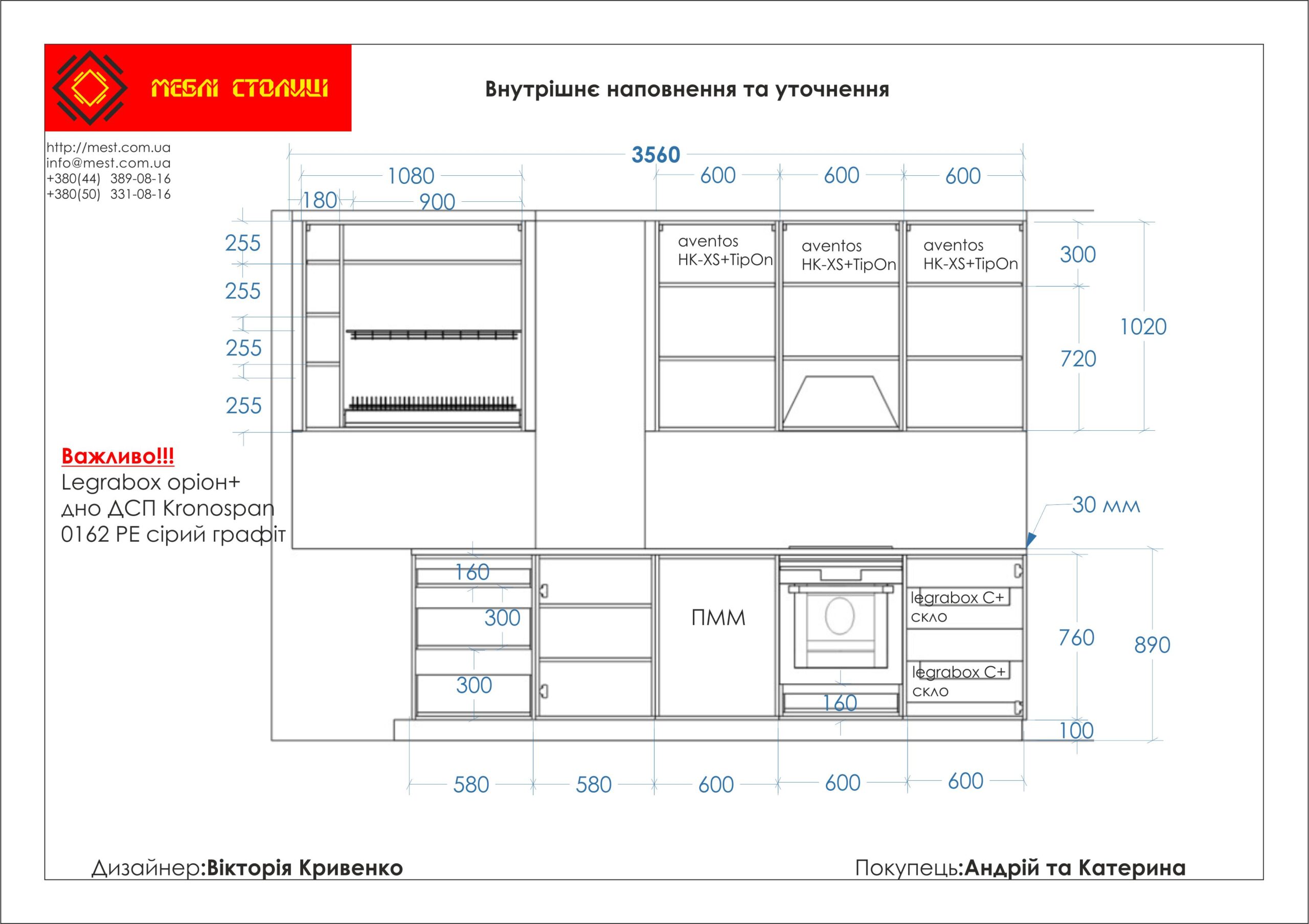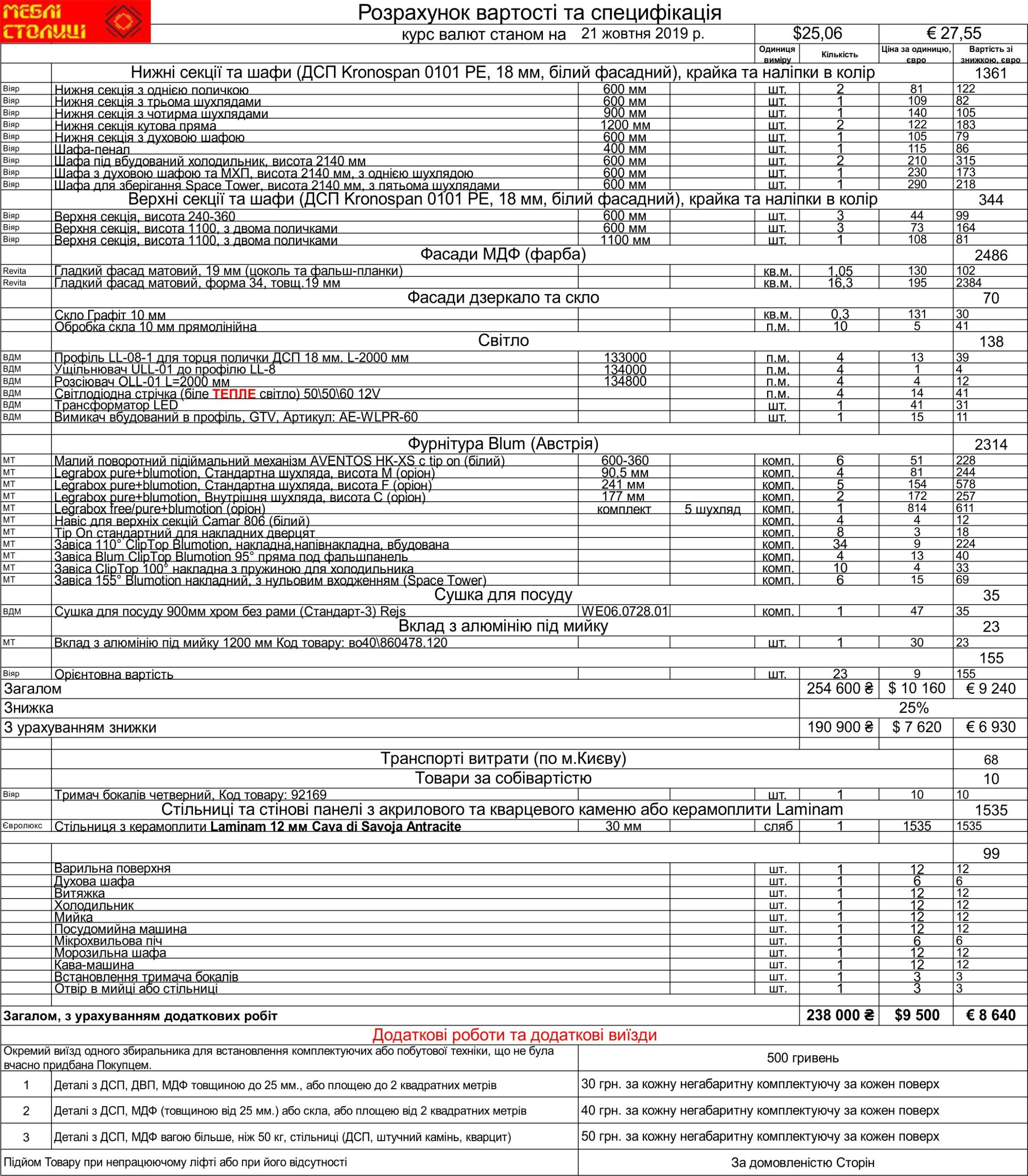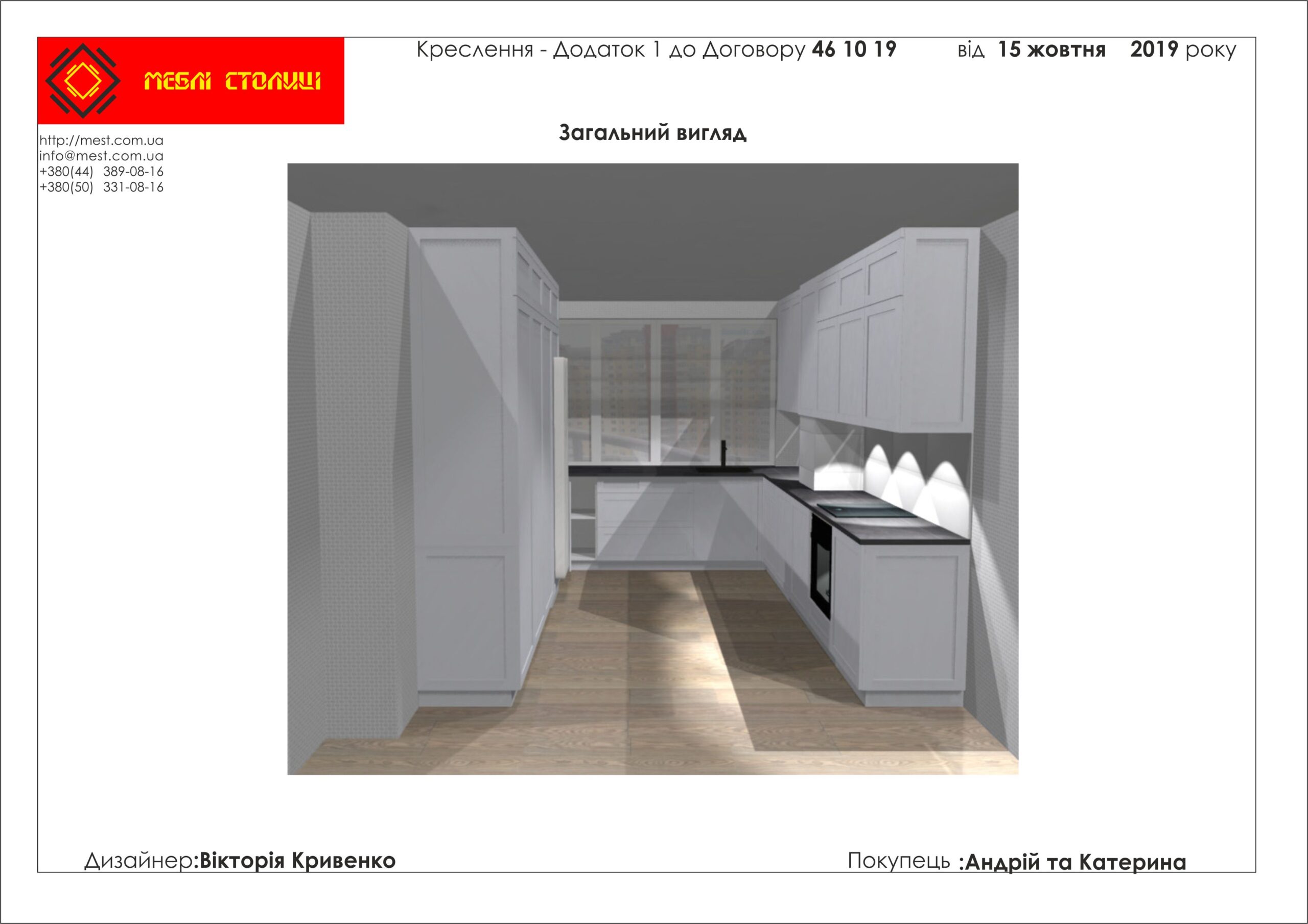 Менеджер: Тел: Номер замовлення: 46 10 19 Дата початку: 19/10/2019Дата виконання: 18/12/2019Вартість: 236 000 гривень Категорії: Кухні