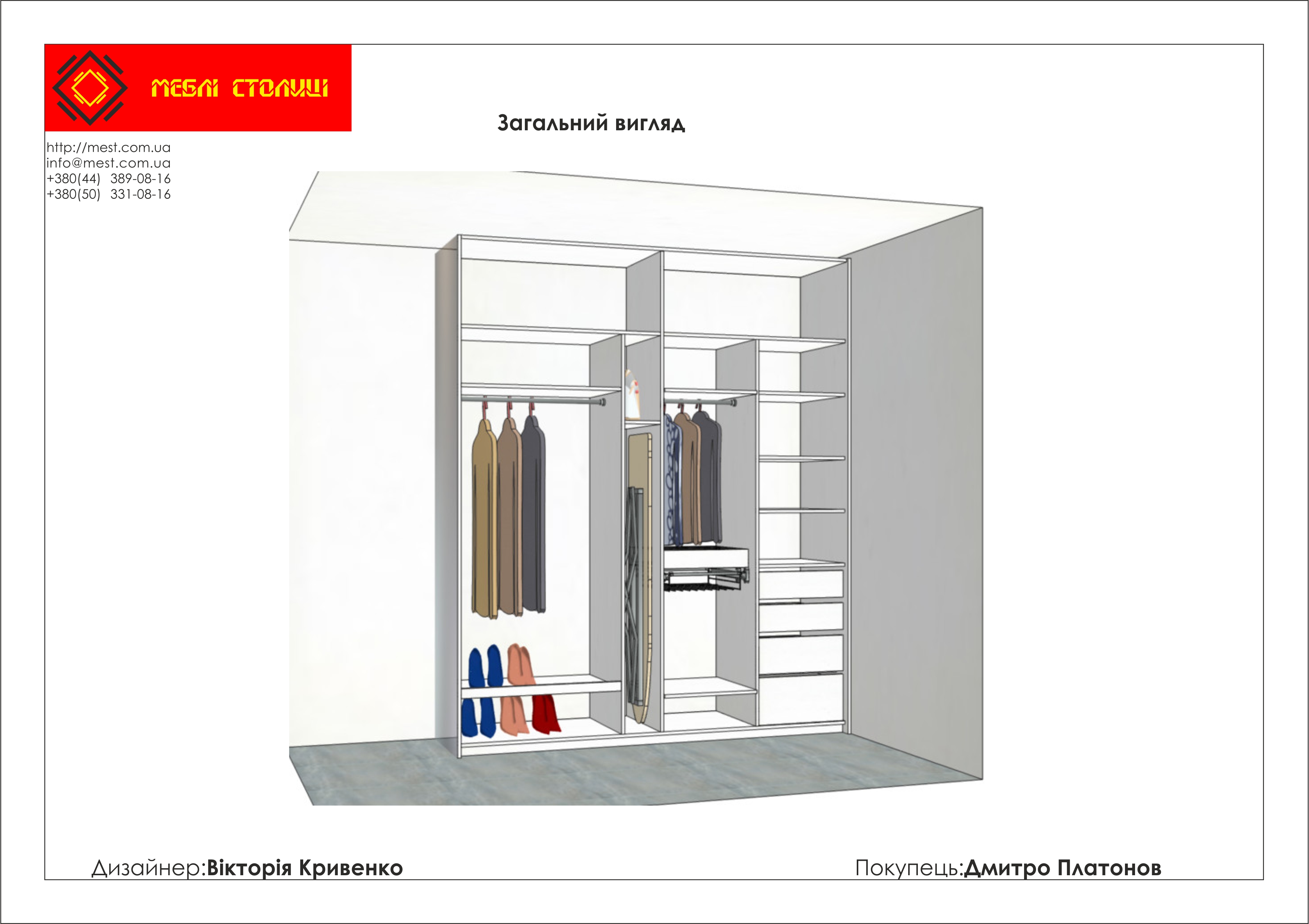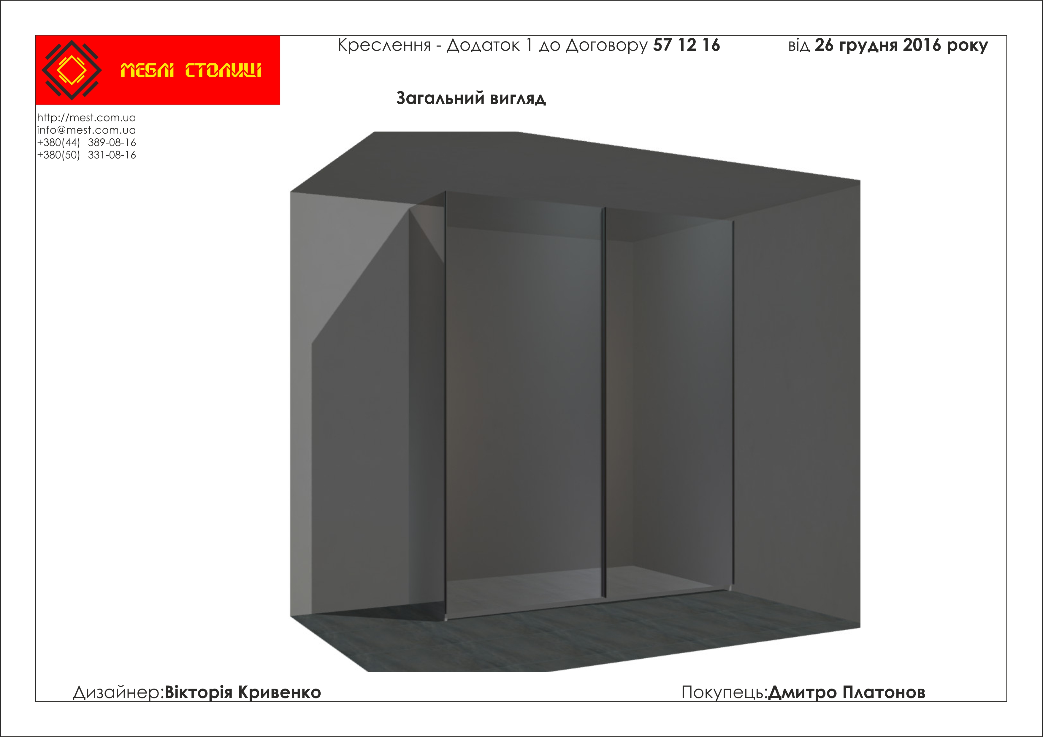 Менеджер: Тел: Номер замовлення: 57 12 16Дата початку: 25/12/2016Дата виконання: 05/02/2017Вартість: 49 600 гривень Категорії: Шафи-купе