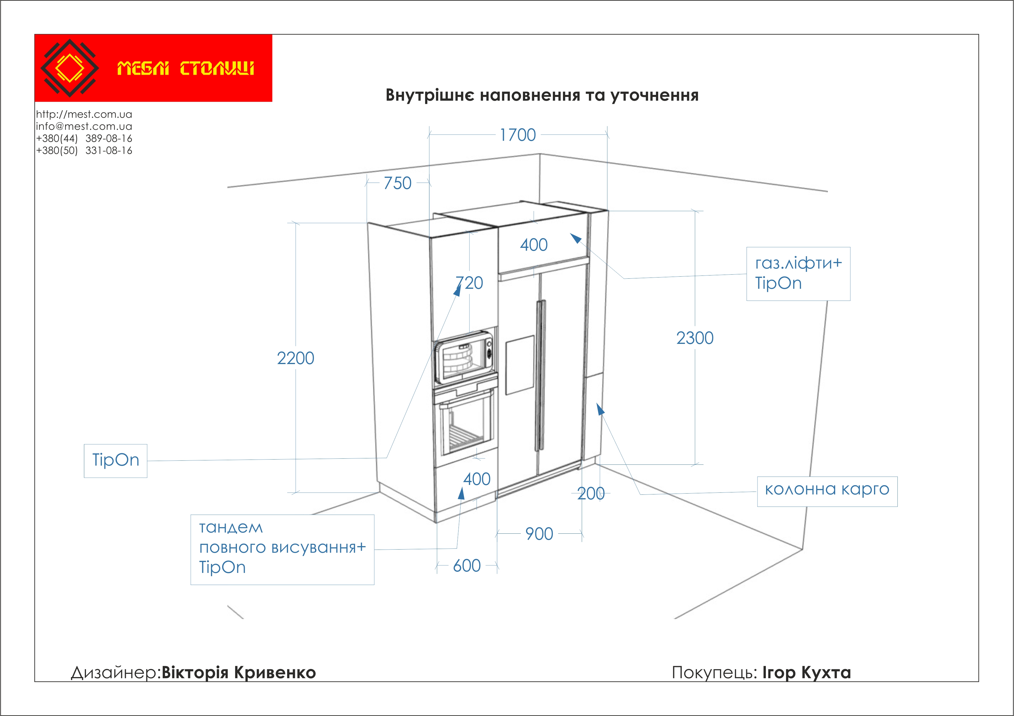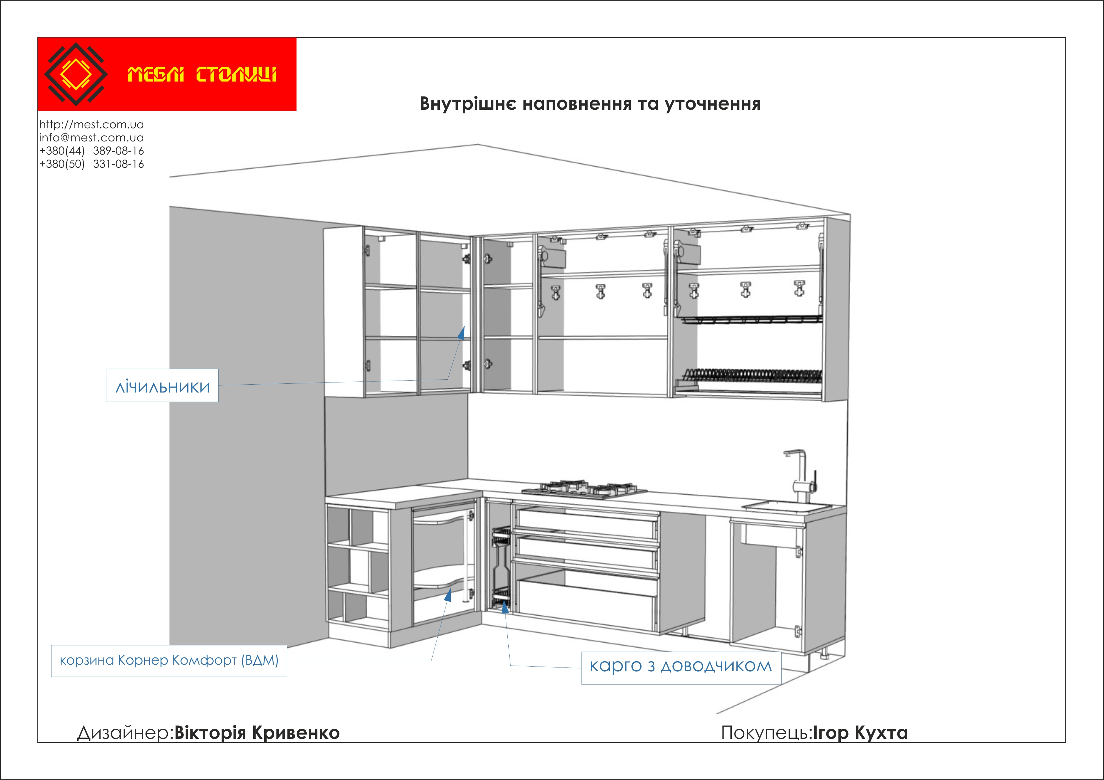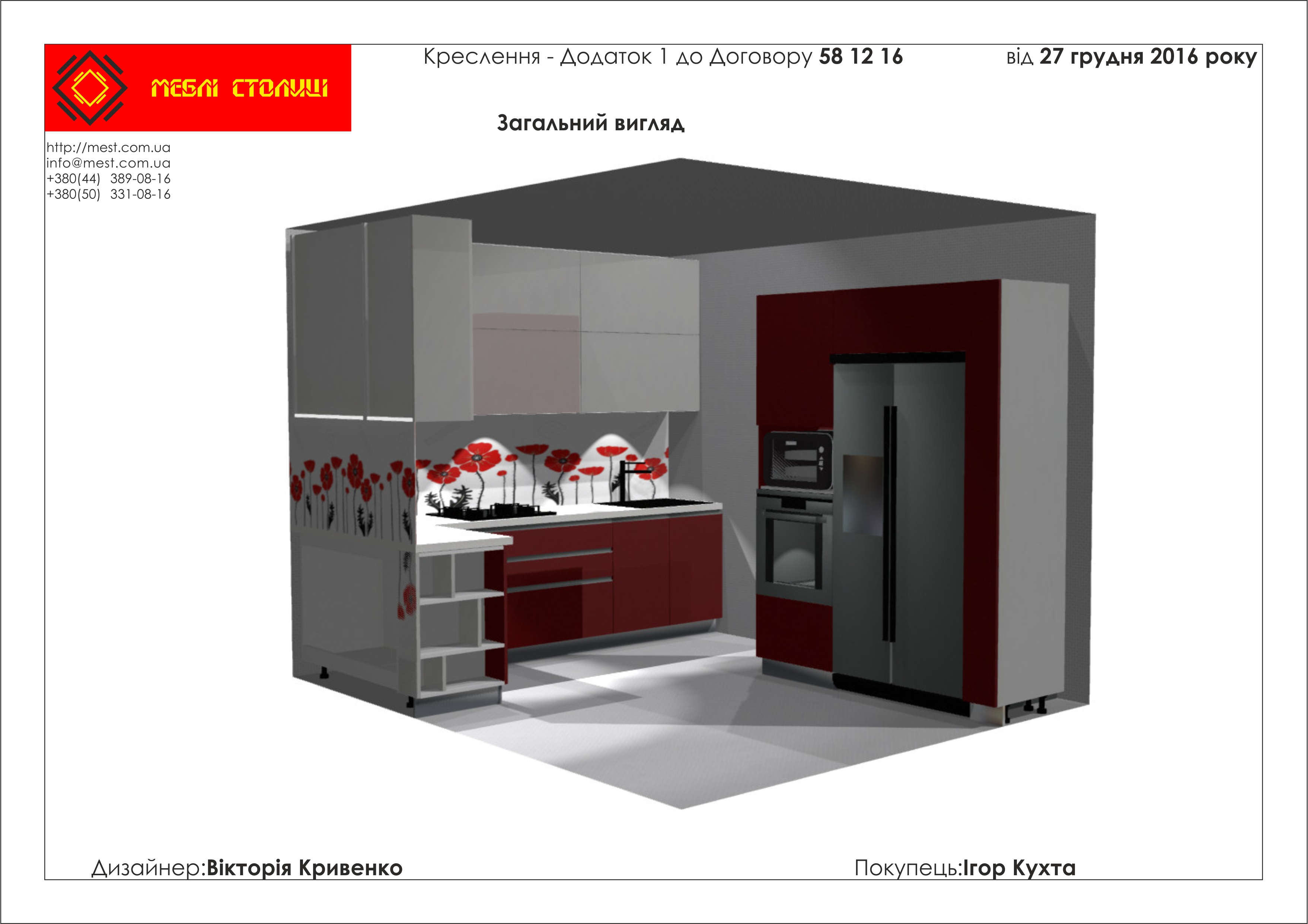 Менеджер: Тел: Номер замовлення: 58 12 16Дата початку: 26/12/2016Дата виконання: 22/02/2017Вартість: 132 200 гривень Категорії: Кухні